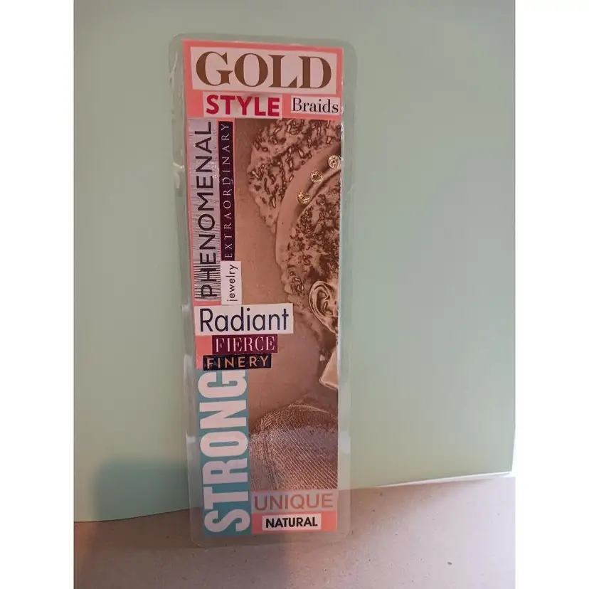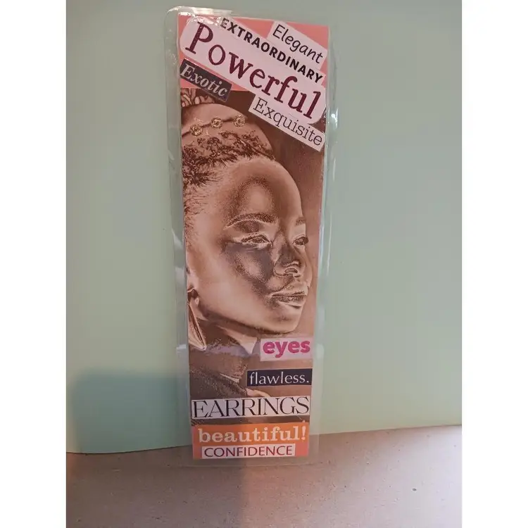 Front and back pictured. All content sourced from old magazines from 1940s to present, and an occasional found sticker. Unique one-of-a-kind art piece. Approximately 8 3/4" x 2 3/4".