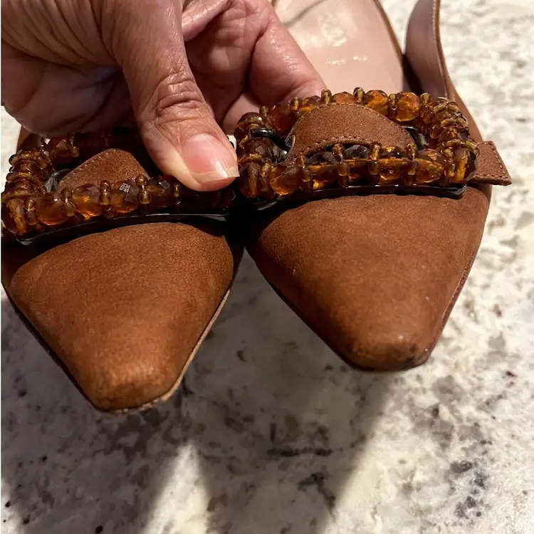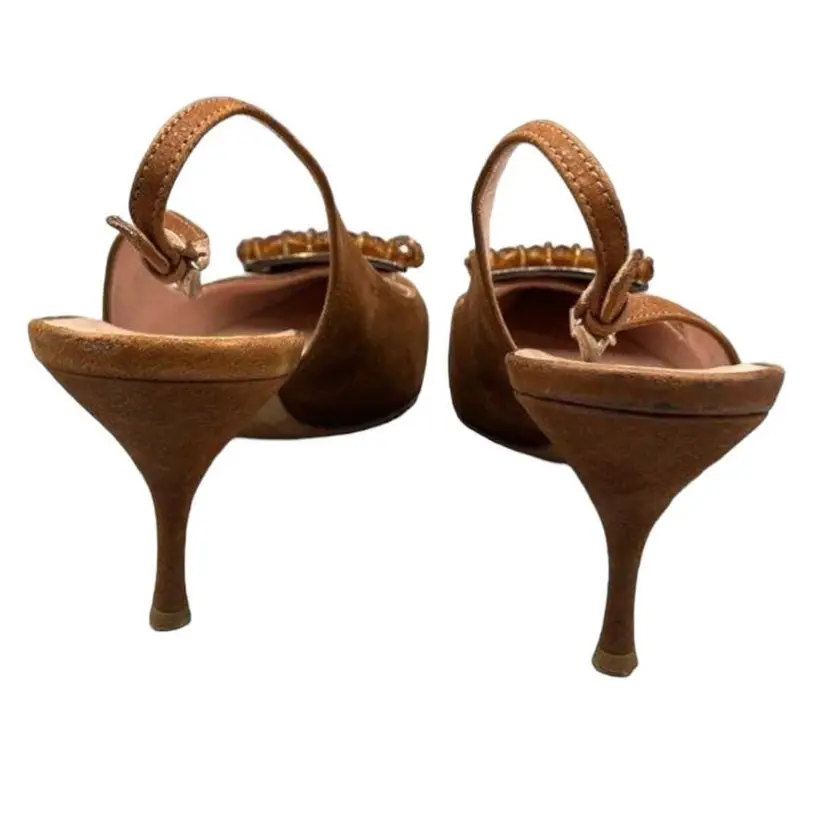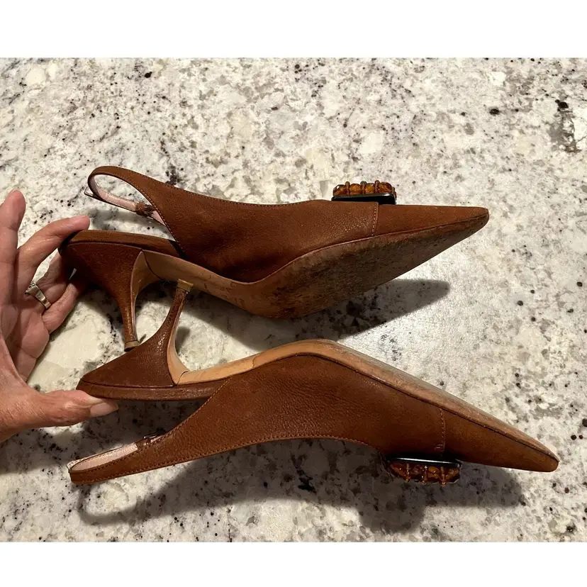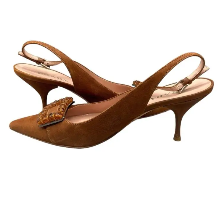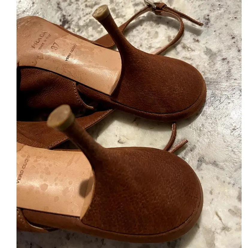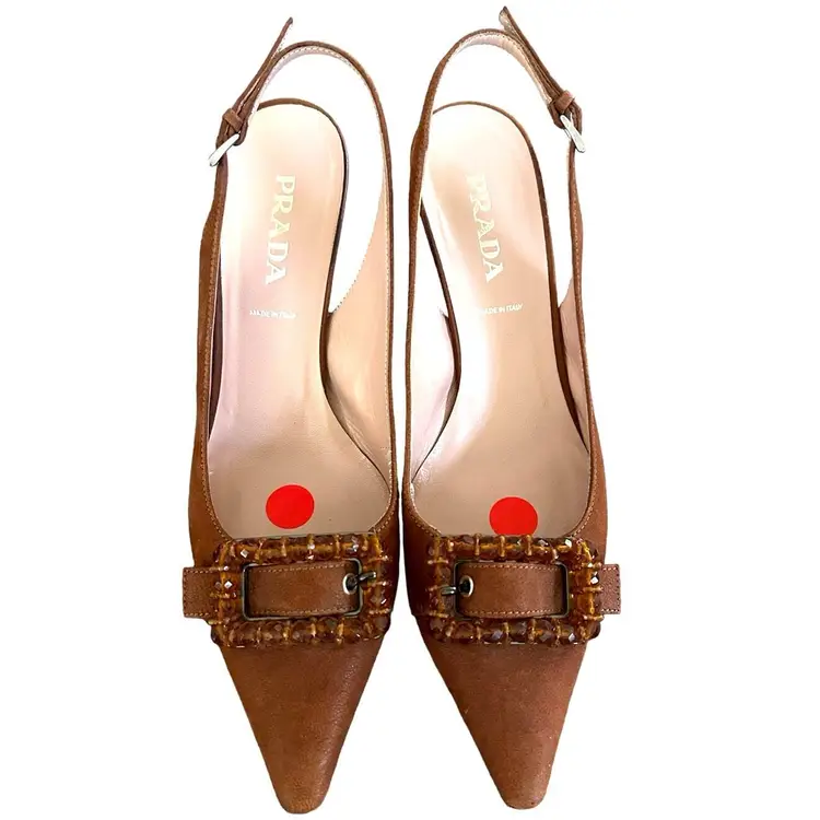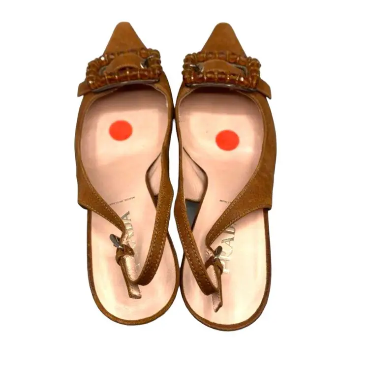 Brand: Prada Color: Brown US Shoe Size: 6.5 Upper Material: Suede Department: Women Style: Slingback Type: Heel