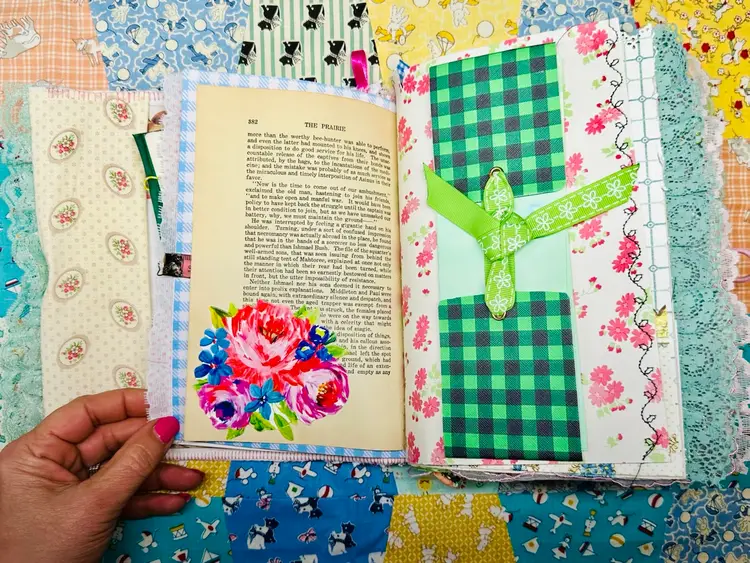 This handmade Prairie Girls journal captures the warmth of sunlit fields, gingham dresses, and handmade living. Designed with layered patchwork textiles, lace trims, and vintage-inspired fabrics, this journal celebrates creativity, storytelling, and slow, intentional crafting.