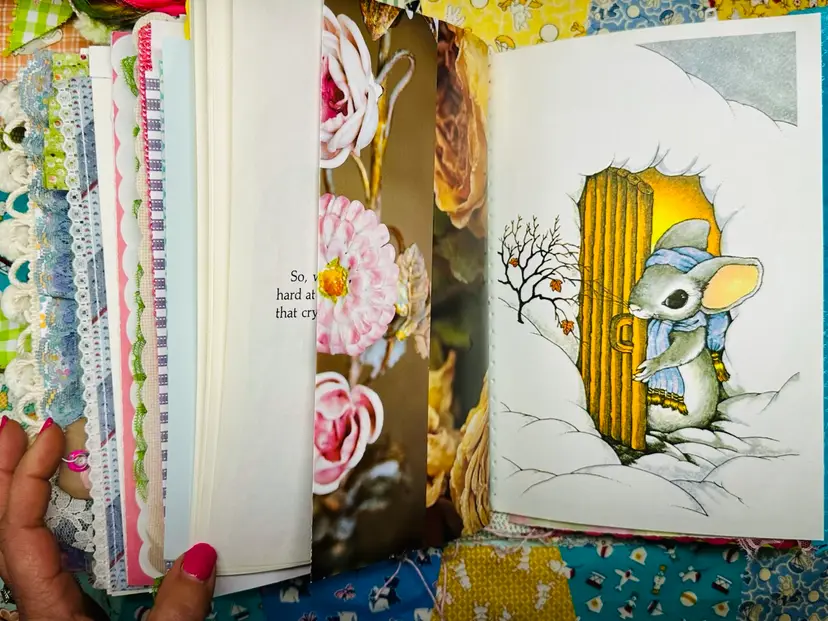 Size: Approx. 10.5 x 7 and a 3.5 inch spine Page count: Approx. 228 front/back pages 5 signatures Tassel: Removable Add on large ephemera pack included Full story book included To see a complete flip thru of this journal click below