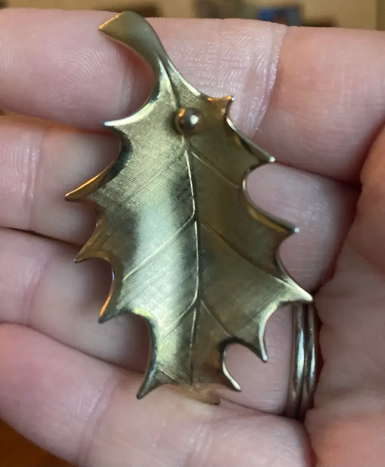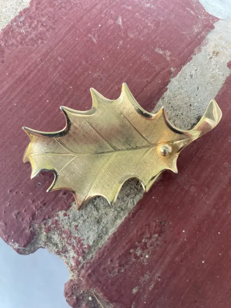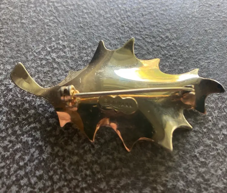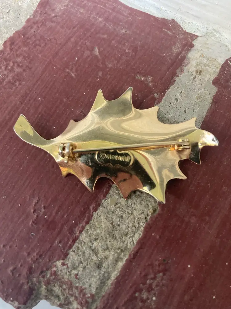 Pre-owned Giovanni Gold Tone Leaf Brooch. 2.25 inches x 1 inch. Please note there is a small area on the back of the brooch where the gold tone has flakes or faded. See photo.