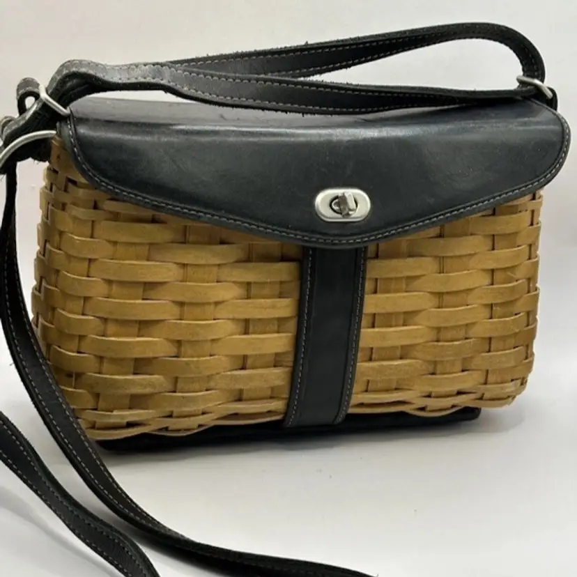 This beautiful Longaberger shoulder bag is the perfect accessory for any occasion. With a width of 11 inches, height of 5 inches, and depth of 4 inches, this bag is spacious enough to carry all your essentials. The natural exterior color and basket material add a touch of elegance to the bag. The strap drop measures 14 inches, making it comfortable to wear for extended periods.