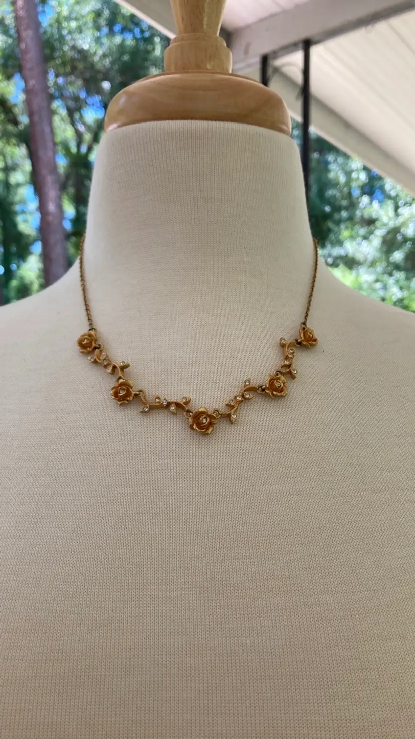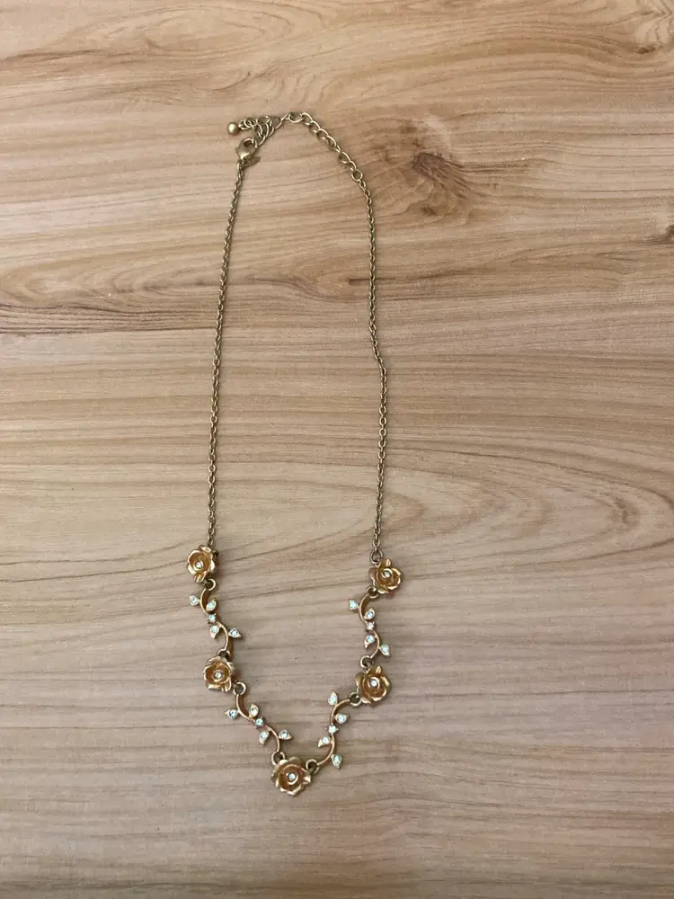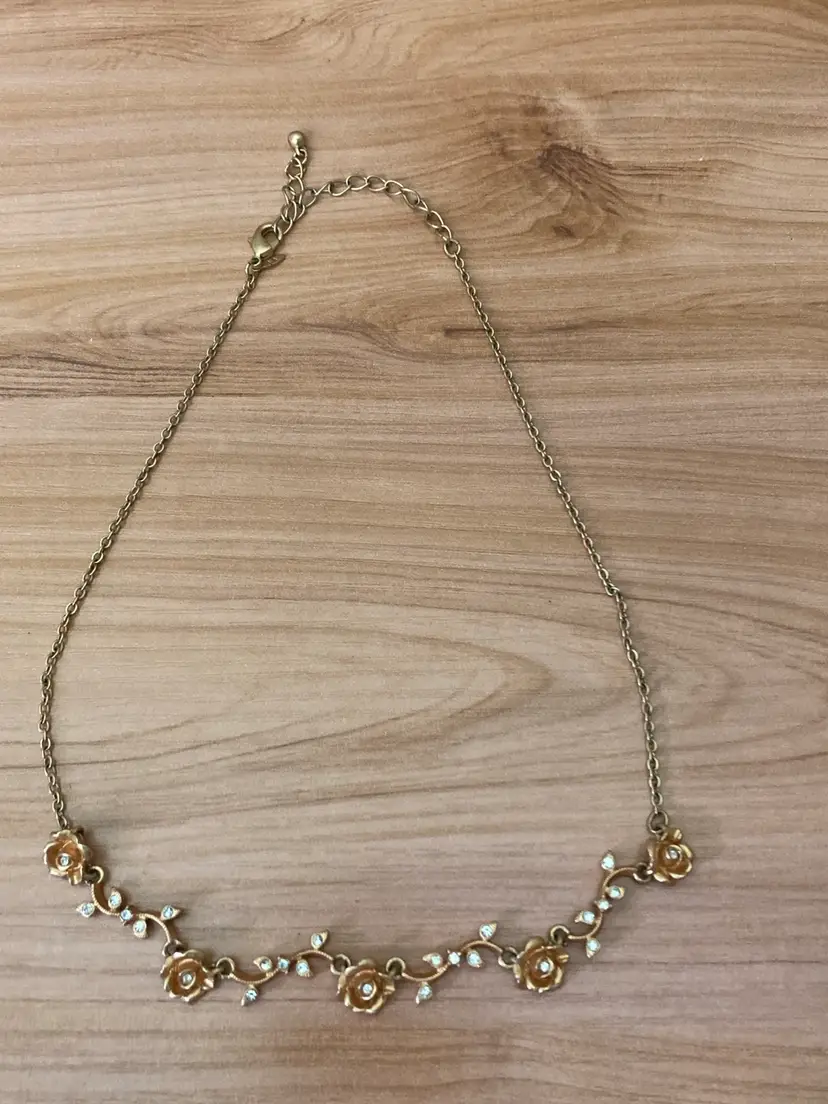 Pre-owned Avon NR Rose Vine Gold Tone Necklace. 16” with 3” extender.