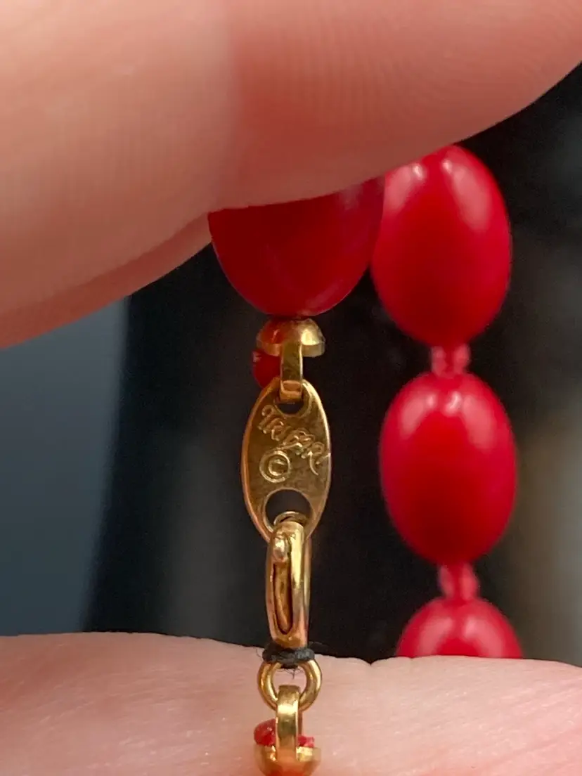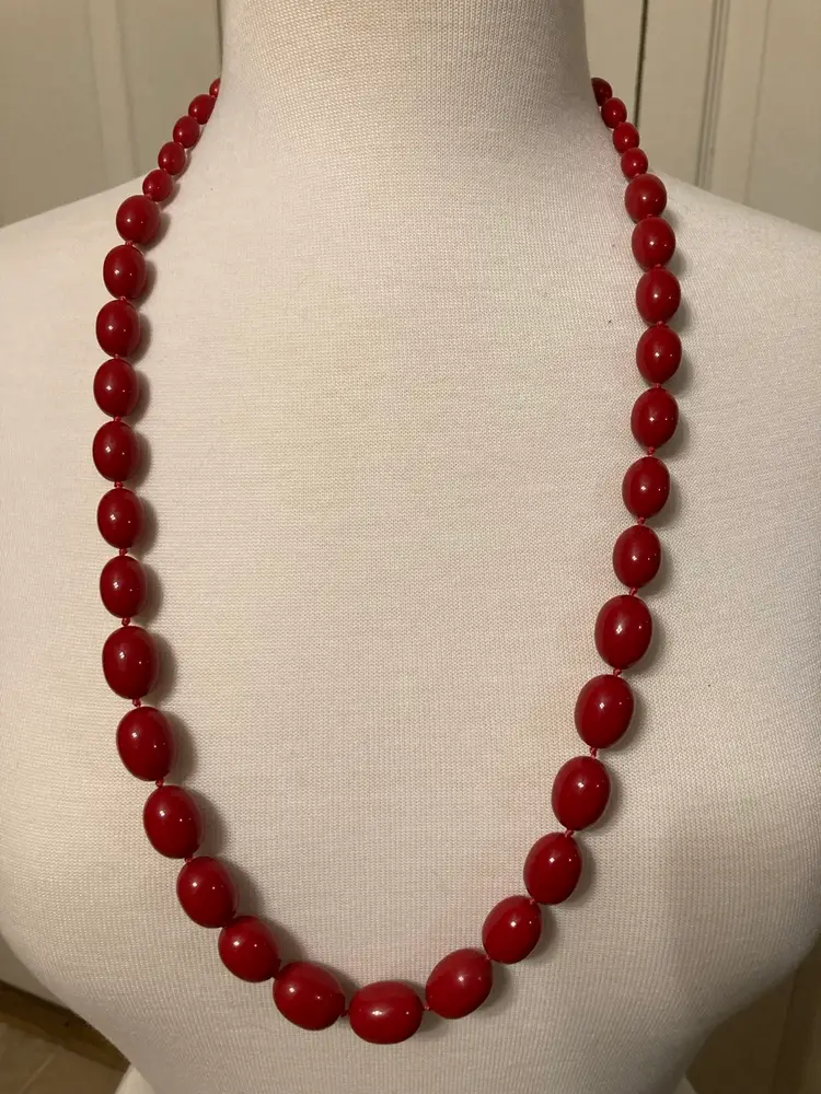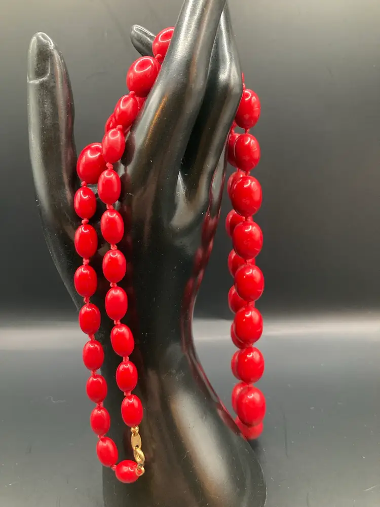 Vintage Trifari Red Acrylic Bead Necklace. Not Bakelite. 30”
