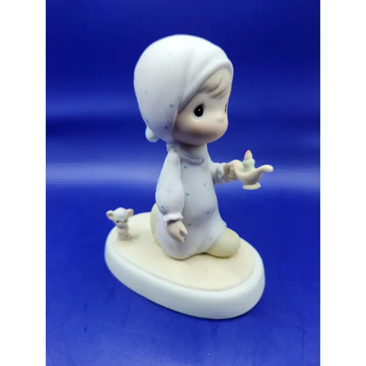 Precious Moment Figurine "Jesus is the Light that Shines" 1983 E0502 Features young boy with candle and mouse Measures 5 inches tall with base of 2 1/2 inches by 4 inches No chips or cracks