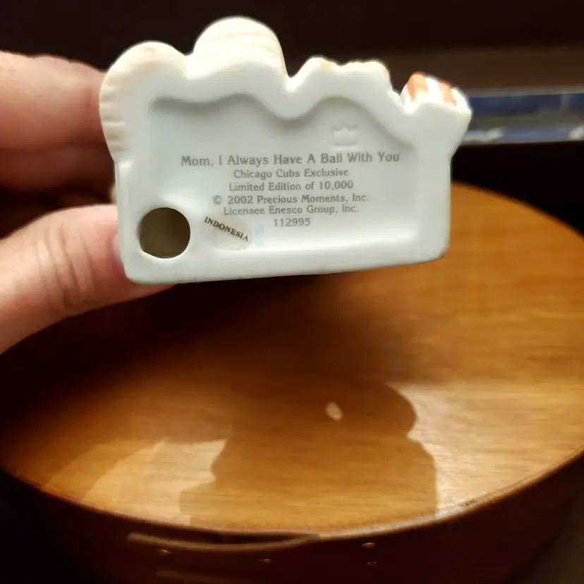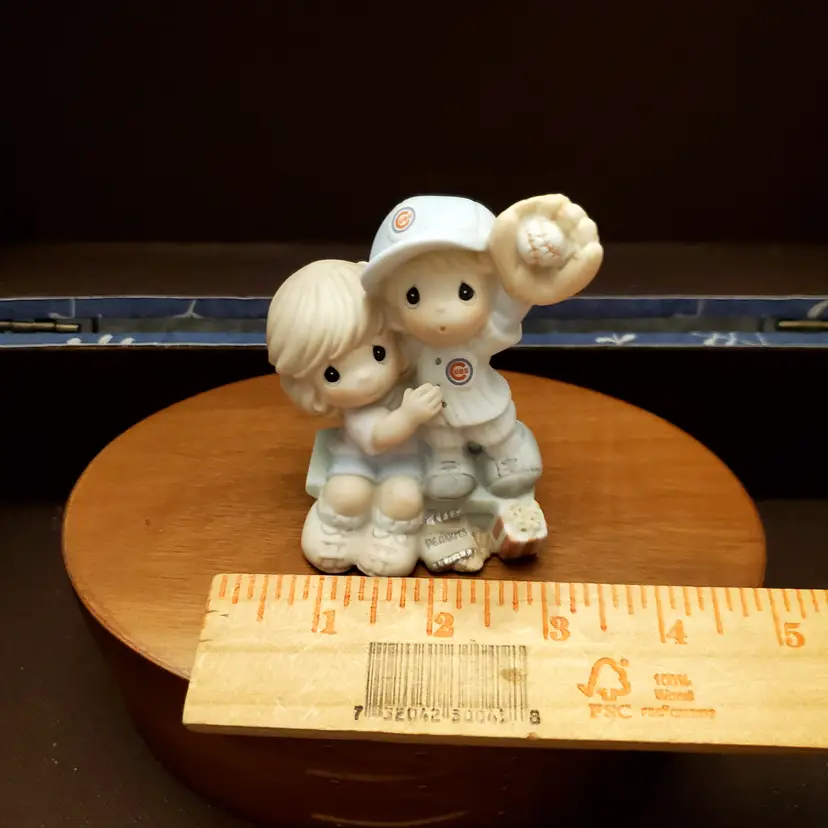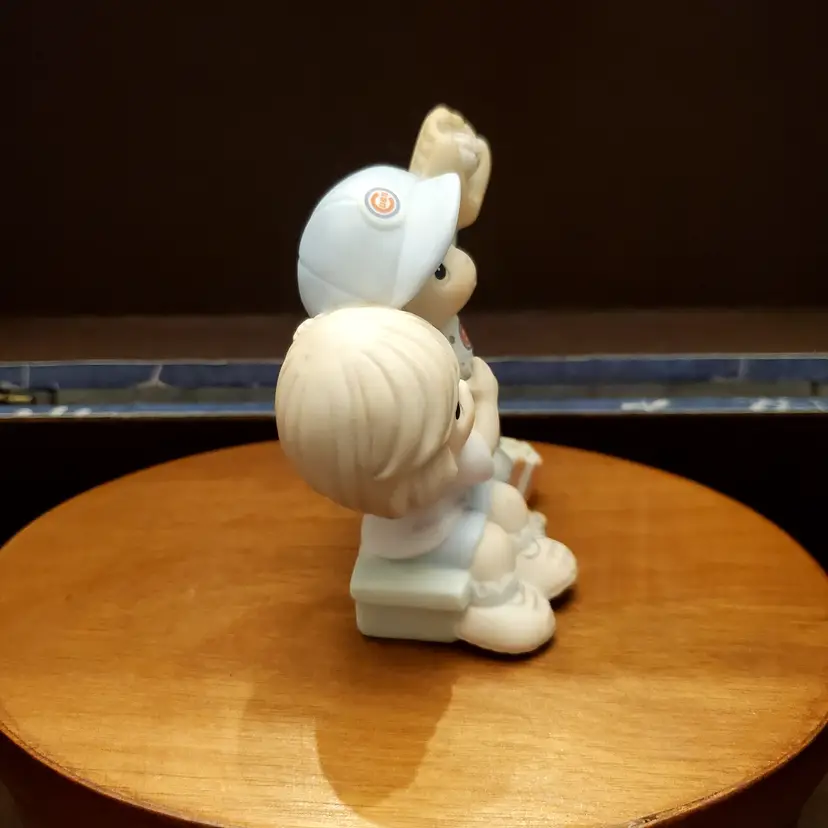 This is a cute precious moment figurine named "Mom, I always have a ball with you." Approximate measurements in photos. No damage.
