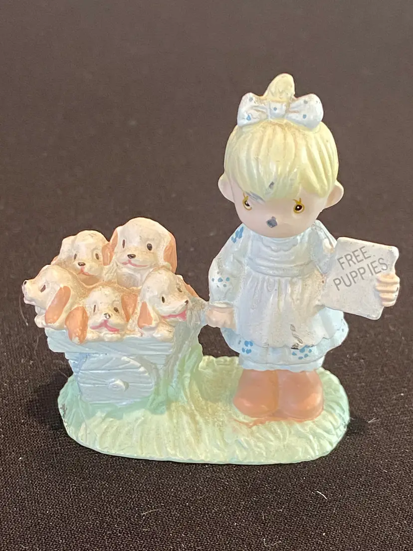 Precious Moments "God Loveth a Cheerful Giver" aka "Free Puppies, 1989 Pewter Miniature Figurine