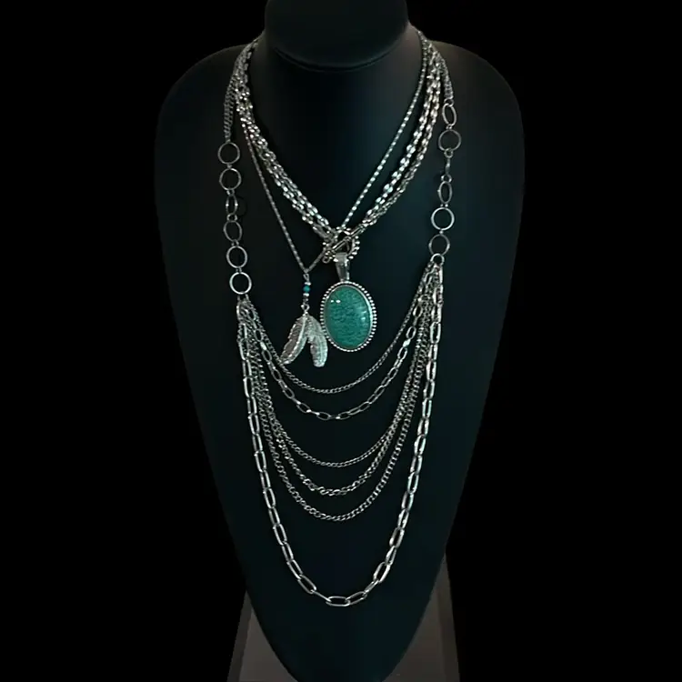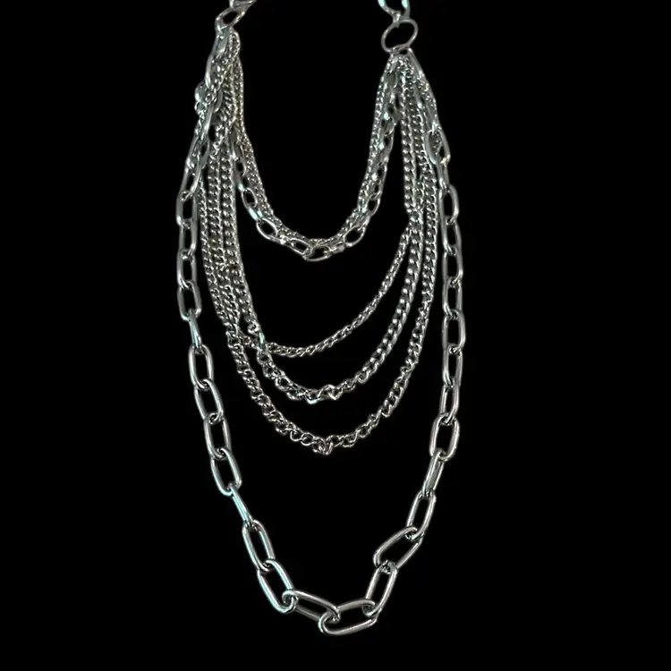 Multi strand,Silvertone necklace approximately 26 inches with a approximate 6 inch drop