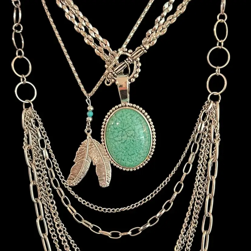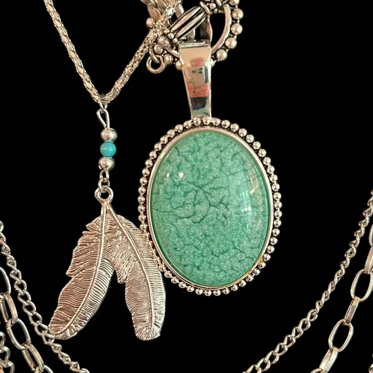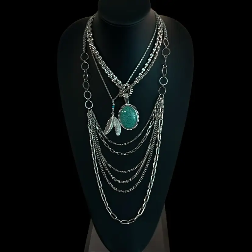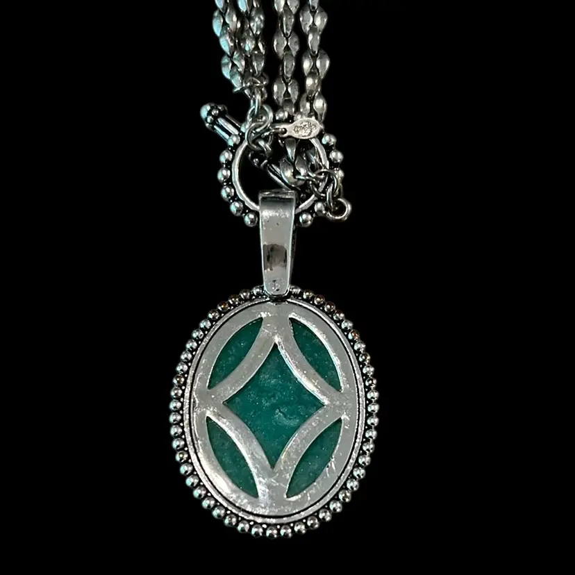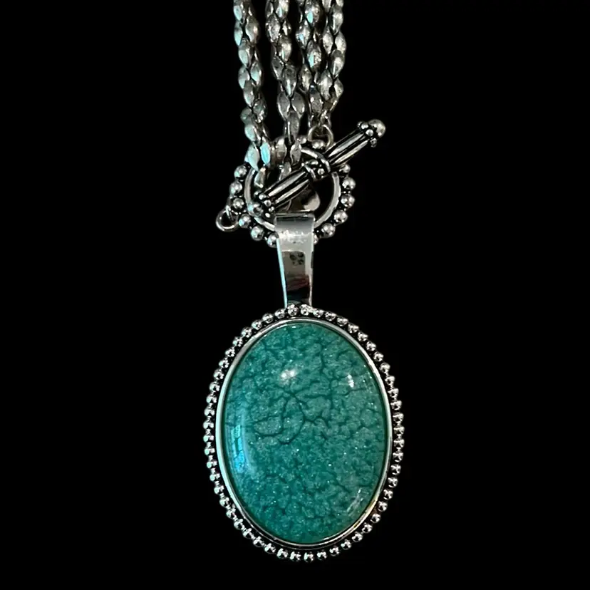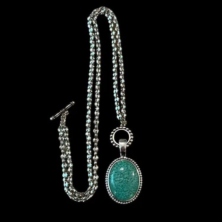 Premier designs Silvertone photo turquoise necklace approximately 16 inches long pendant 3 1/4 inches long can be worn at 32 inches