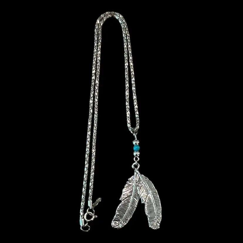 Silvertone feather charm necklace, approximately 22 inches