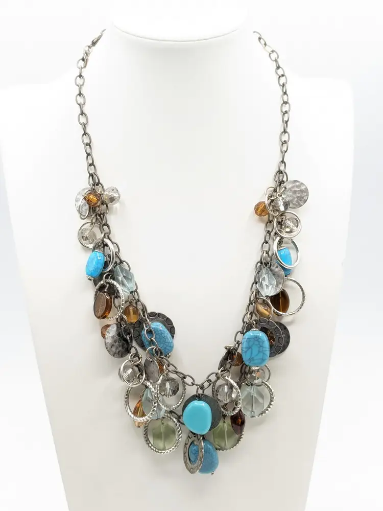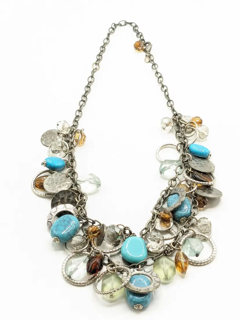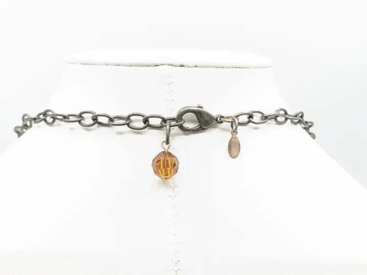 Good condition. Antiqued silver tone chain. Measures 19" + 4" extender.