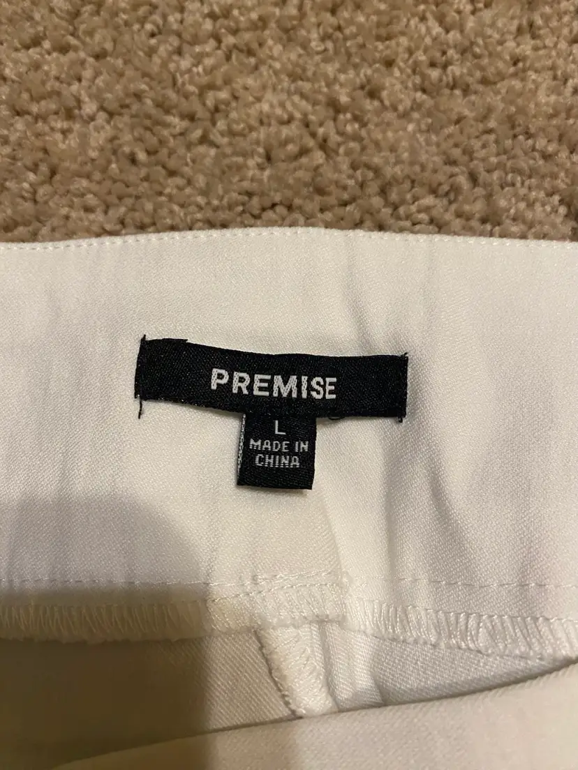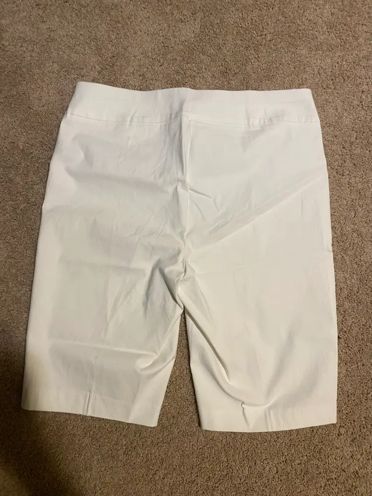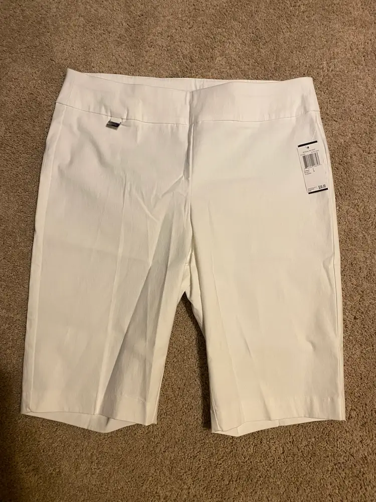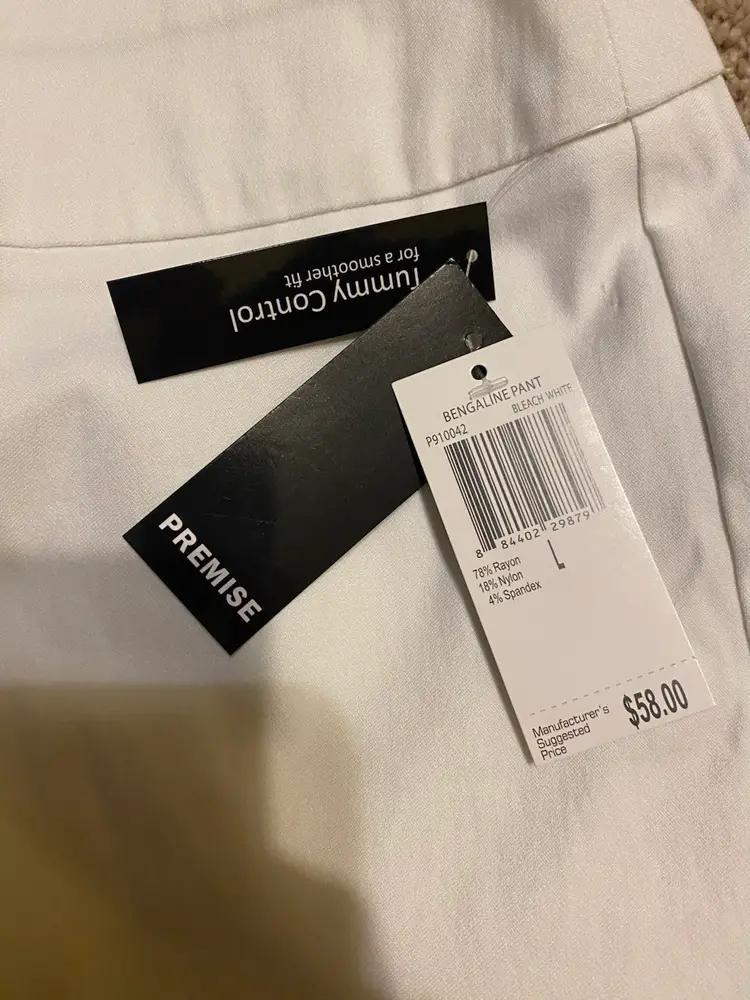 You are purchasing one pair of Women's Size Large Bleach White Capri Bengaline Pants by Premise. These Pants are brand new with Tags.