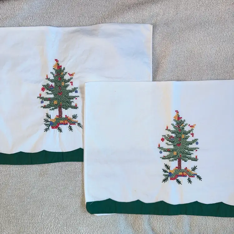 Vintage Lillian Vernon Kitchen Tea Towel Christmas Tree Cross Stitch Set 2. Lightweight Linen Tea Towel Cross Stitched Christmas Tree. Overall Size Is 15 x 22. See Last 2 Photos Of Some Minor Yellowing/Stain on 1 Towel. Have Not Attempted To Treat. May come out in Wash But Not Guaranteed. Smoke Free Home. #lillianvernon #teatowel #chriatmas #vintagechristmas #christmastree