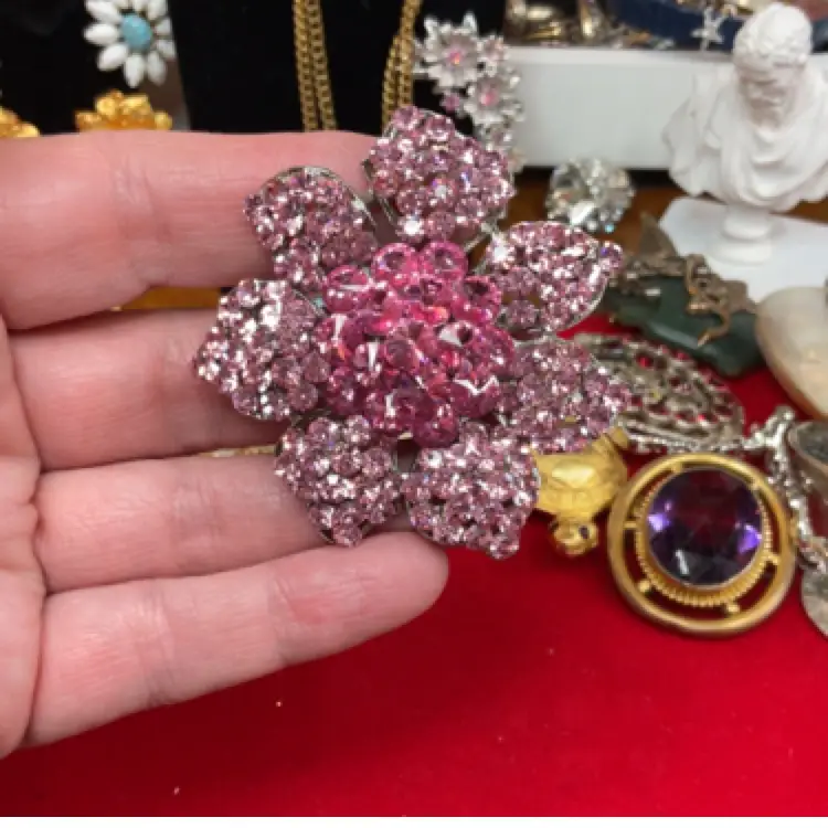 Welcome to our shop of mostly pre-owned and sometimes new jewelry treasures, trinket boxes, compacts - sometimes art and glass. Please follow us so you're in the know when we go live or add new items. Our curated beauties include a large selection of vintage pieces as well as many contemporary items. We also craft and design our own fun costume (and some fine) jewelry pieces, bookmarks, digital art and more in our small studio.