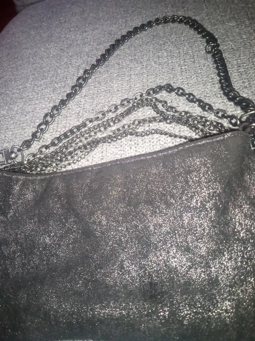 Pretty dress purse from old navy brown sparkle material silver tone chains zipper inside good condition
