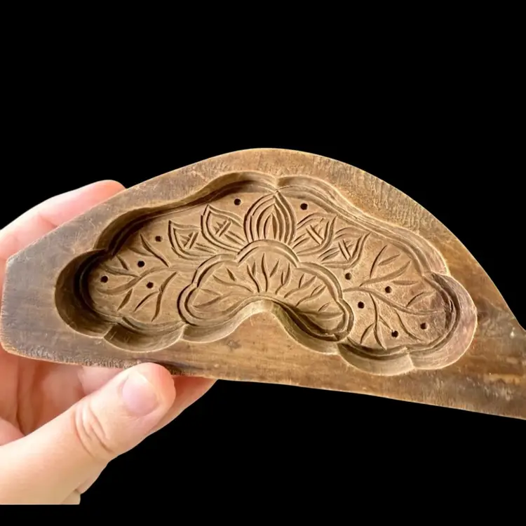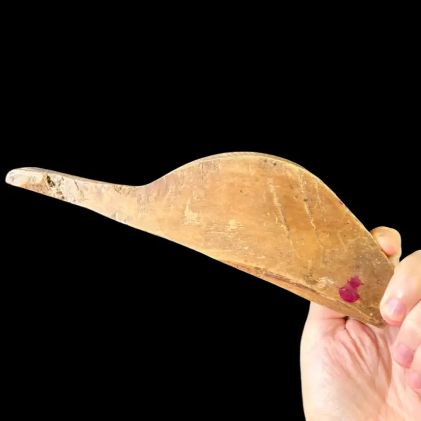 8.75”x2.75”x1”. From the 1800’s. Used for butter, dough, rice. Has some old adhesive residue on handle.
