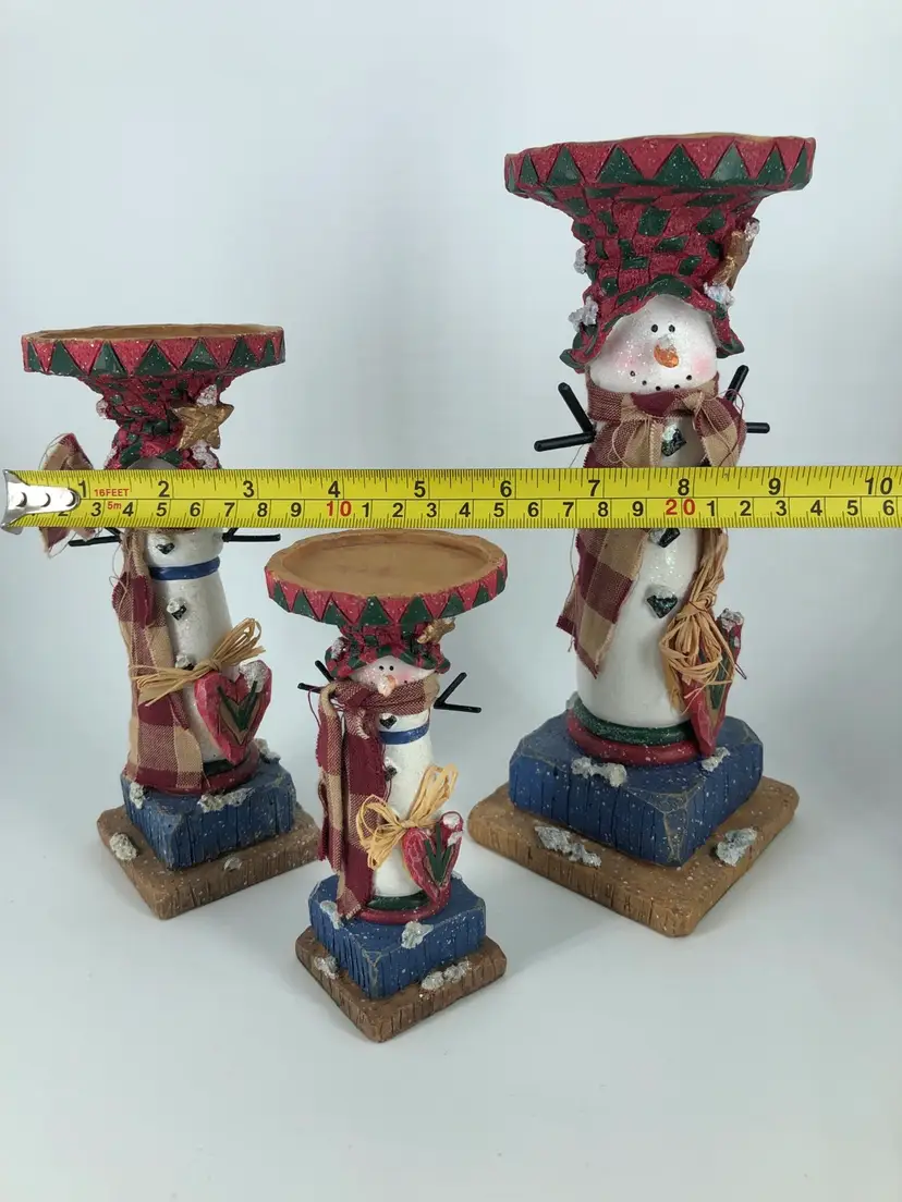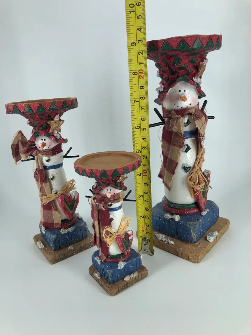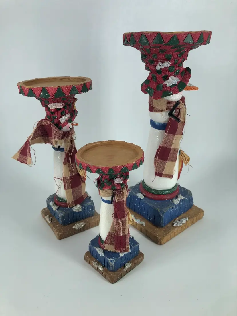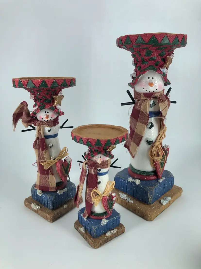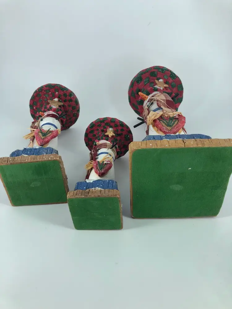 Primitive Snowman Candle Holders Set Of 3