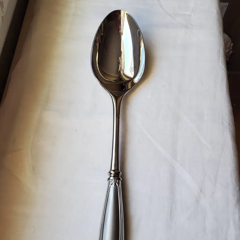 Princess House Barrington Stainless 18/10 Solid Serving Spoon. 12 3/4". Small surface scratch as shown