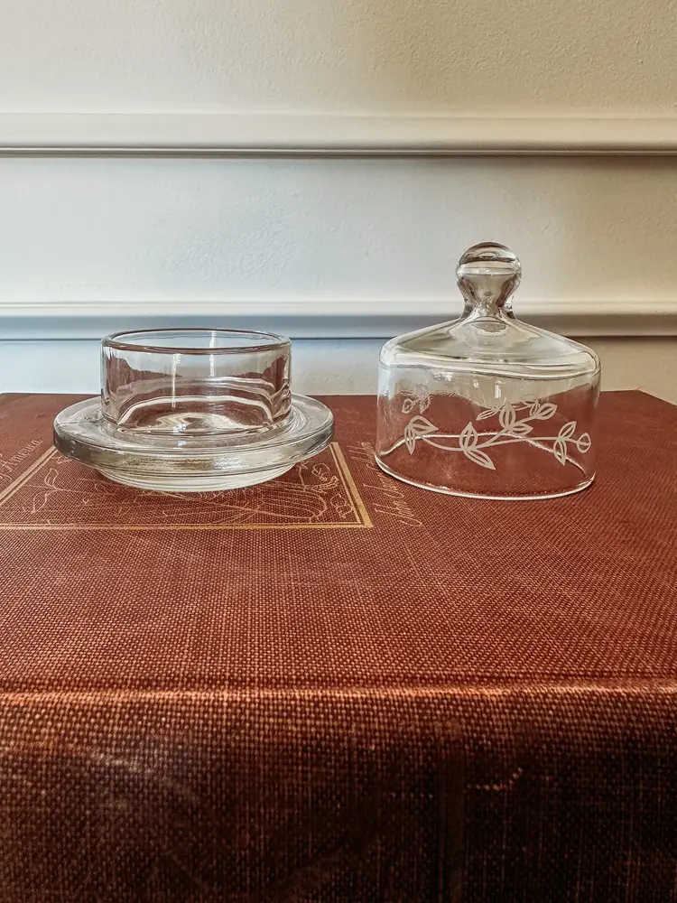 This little domed vessel would be GREAT to hold matches! This would be a beautiful gift with a homemade candle or would look great styled in your own home! Or, you can use the butter dish for it's original purpose or a tea light!