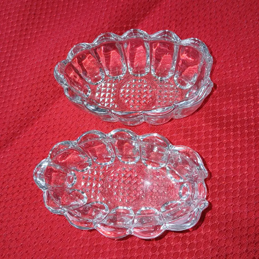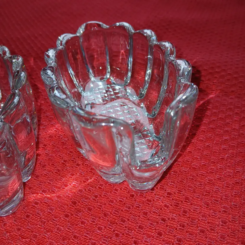 Set of 2 Princess House spoon holders Is made of clear, ribbed crystal glass with a scalloped edge. Designed to hold multiple spoons or forks. Nice for a Buffet style meal.