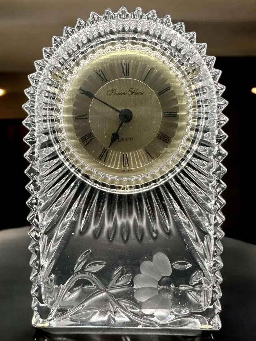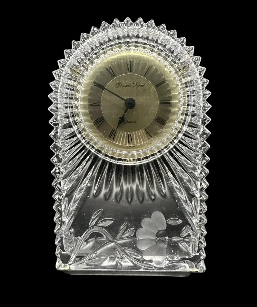 This clock was made in the 1980s, and I no longer have the box. Excellent condition, no chips or cracks. The clock face reads Princess House. Quartz movement, made in Germany. —Product Information -Height: 7 1/2 in -Width: 5 in -Special Characteristics: #096 -Blown Glass -Crafted In Germany -Discontinued Piece