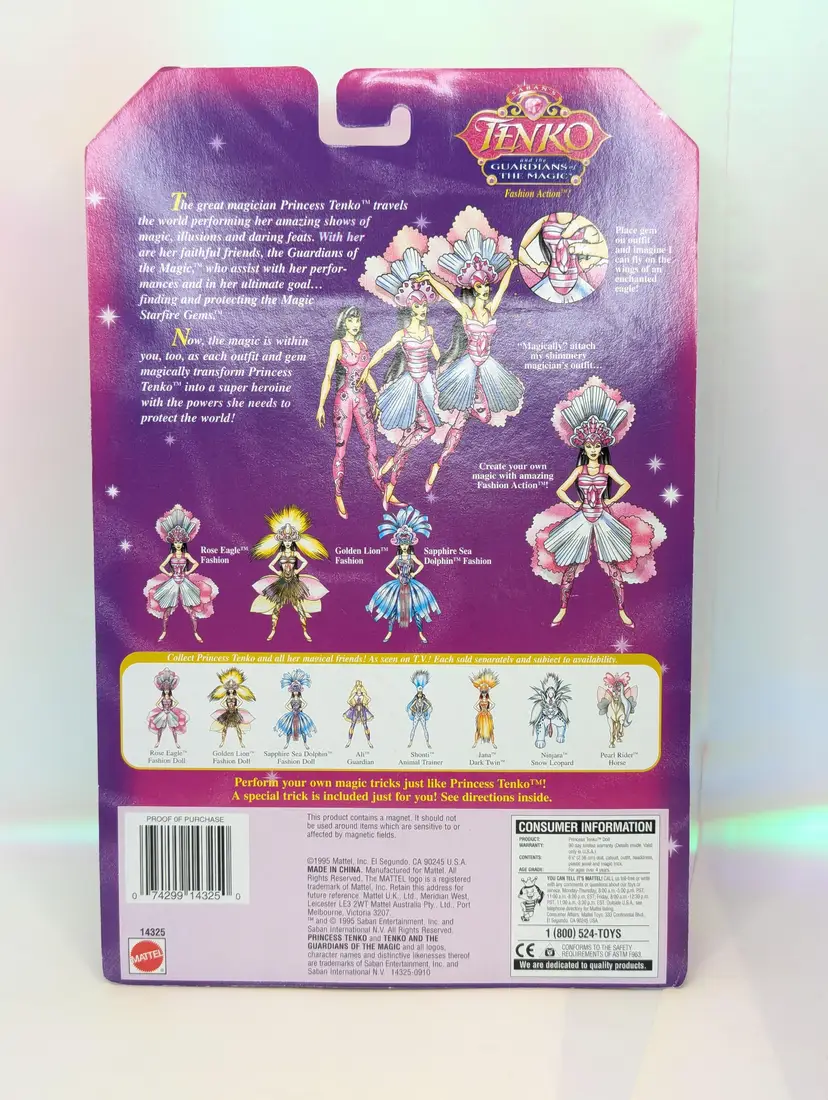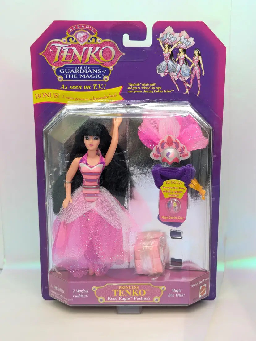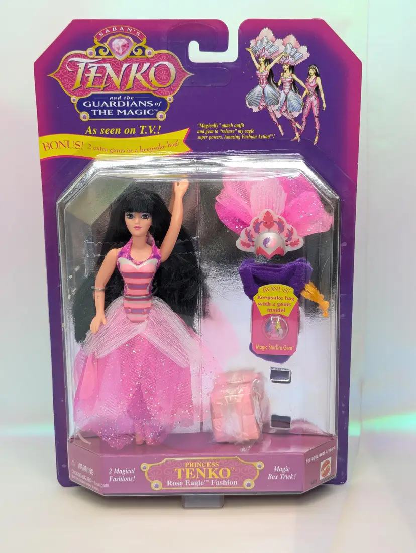 Vintage Princess Tenko "Guardians of Magic" Rose Eagle Magical Fashion Action Doll with magic trick box from 1995 by Saban /Mattel Still new in package. This doll is in very good condition, very light wear to the box, like scratches on the plastic or light corner wear and dents. The box inside has come off the backing and is moving around in the box. Other then that this is a great item for any collector! Comes form a smoke free, pet friendly home.