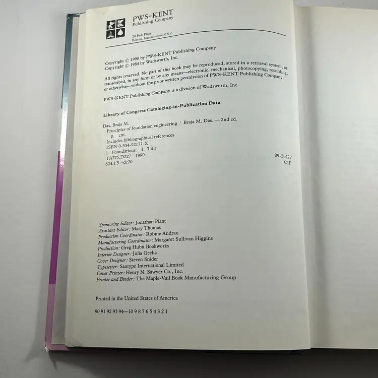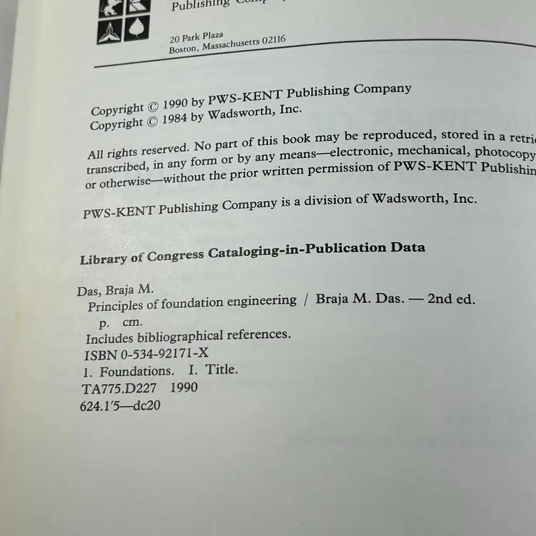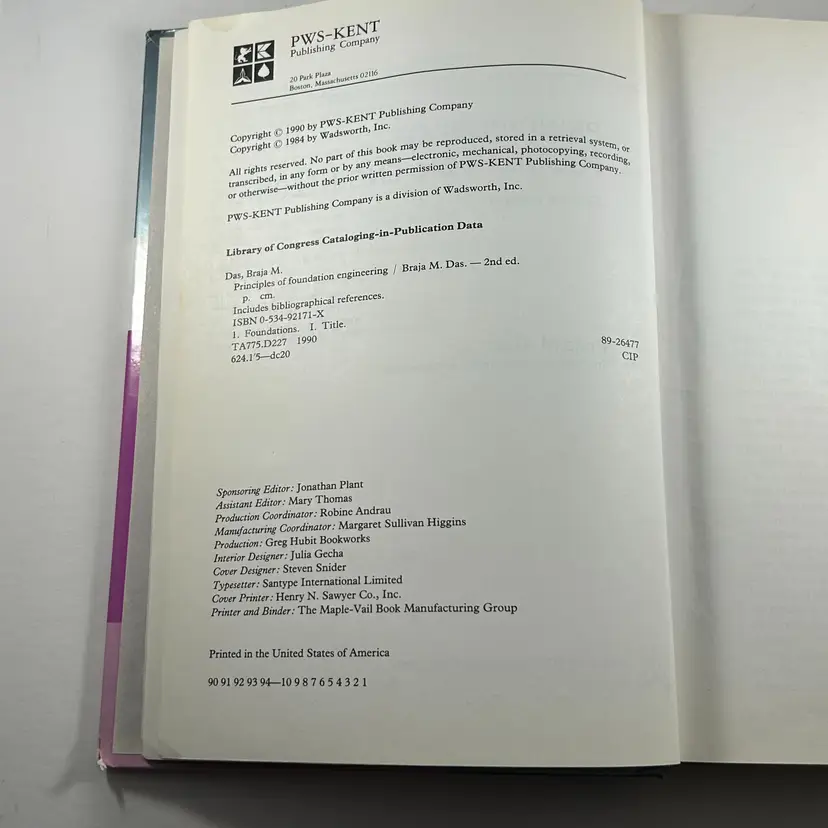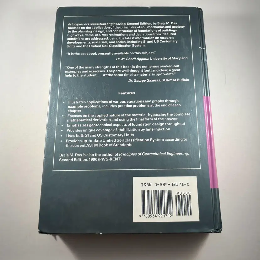 Principles of Foundation Engineering Hardcover Book Second Edition Braja M. Das