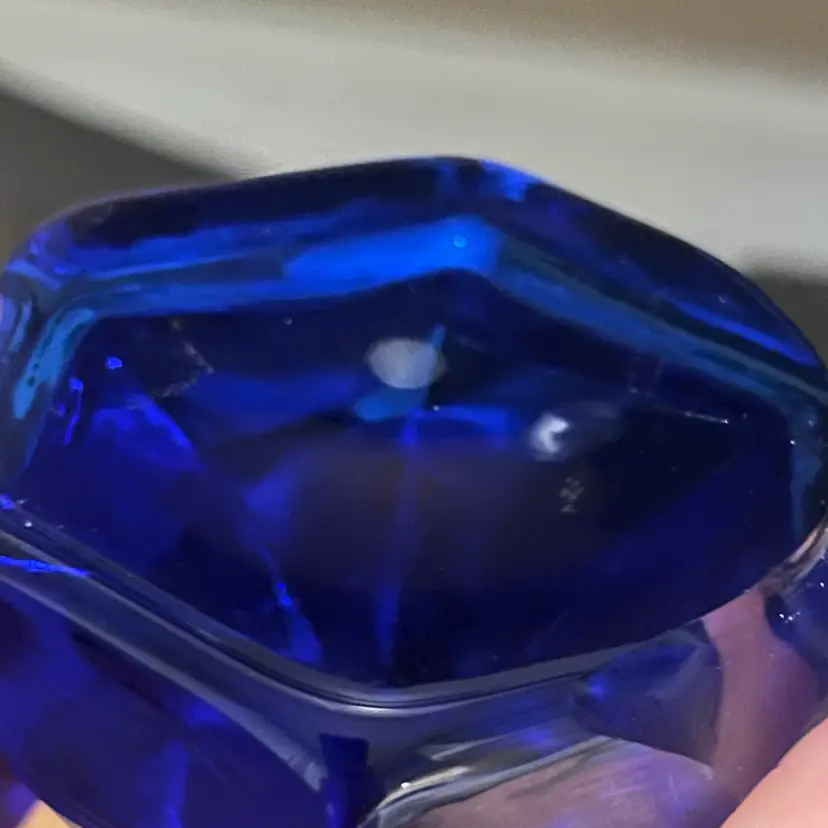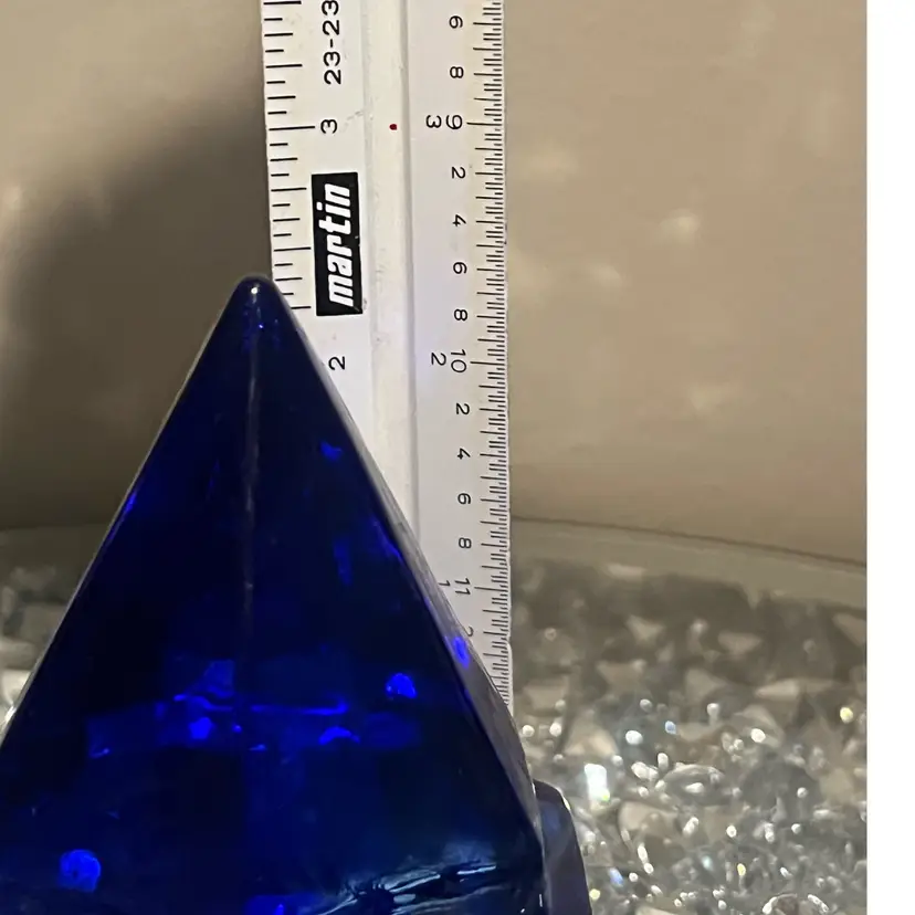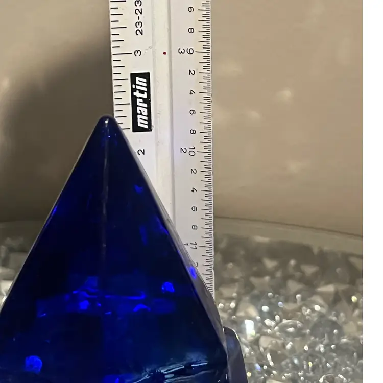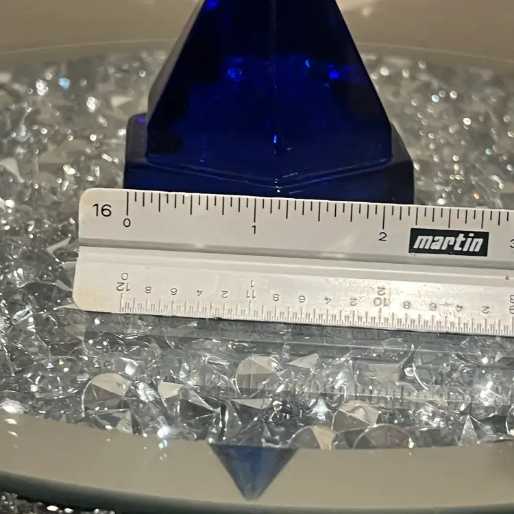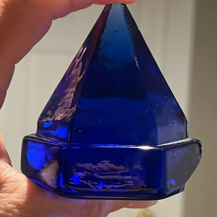 Prism Cobalt Blue Hexagonal Pyramid Glass Diamond Paperweight Ships Deck prism. In good used condition. Measures approximately 3.3 inches tall