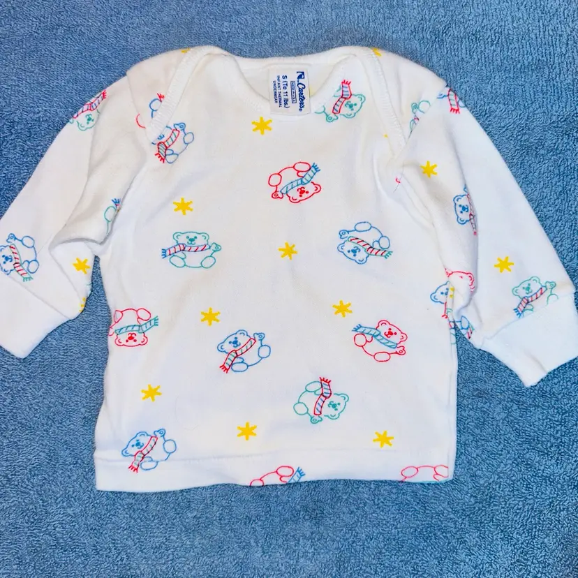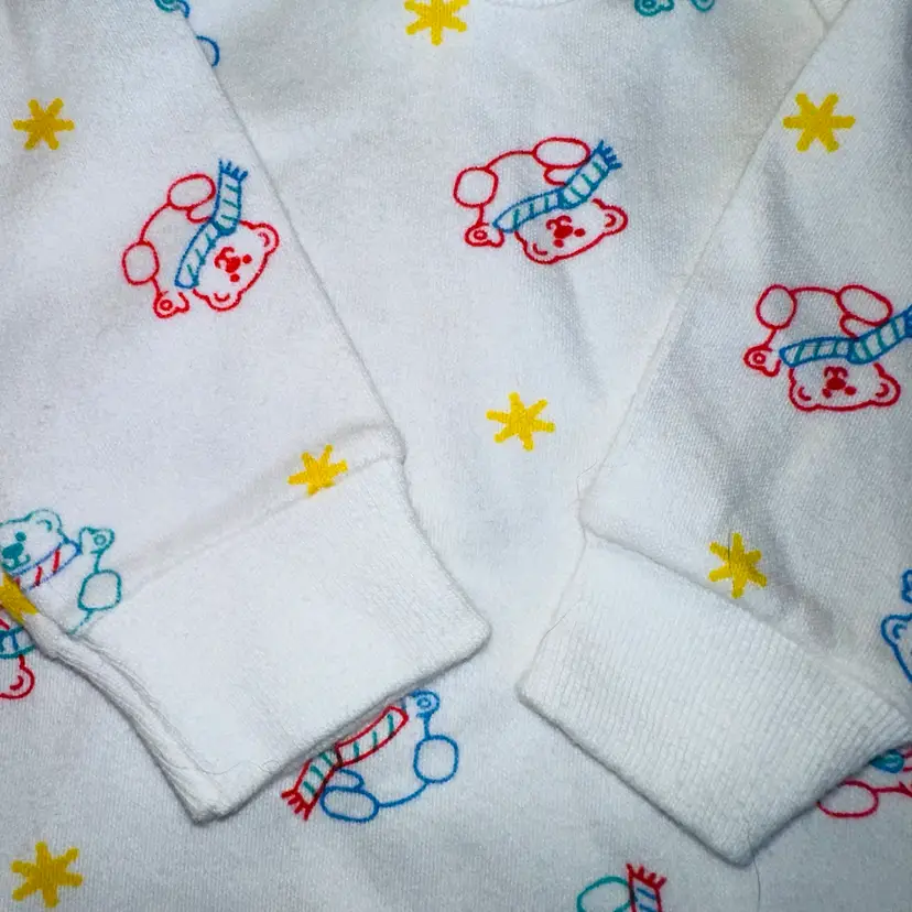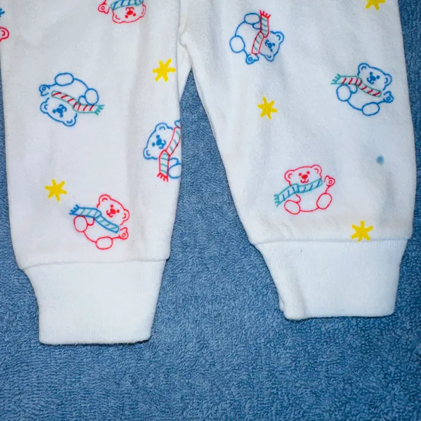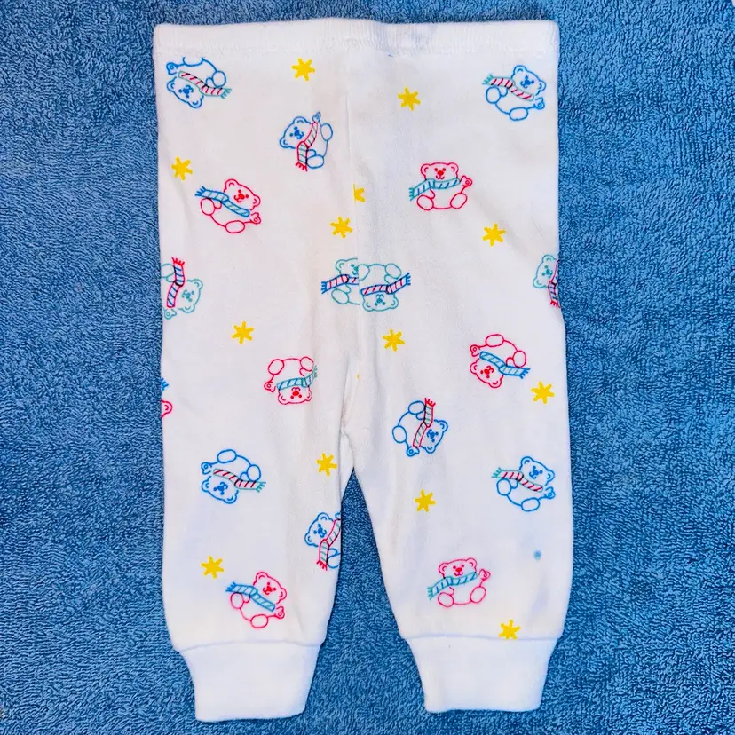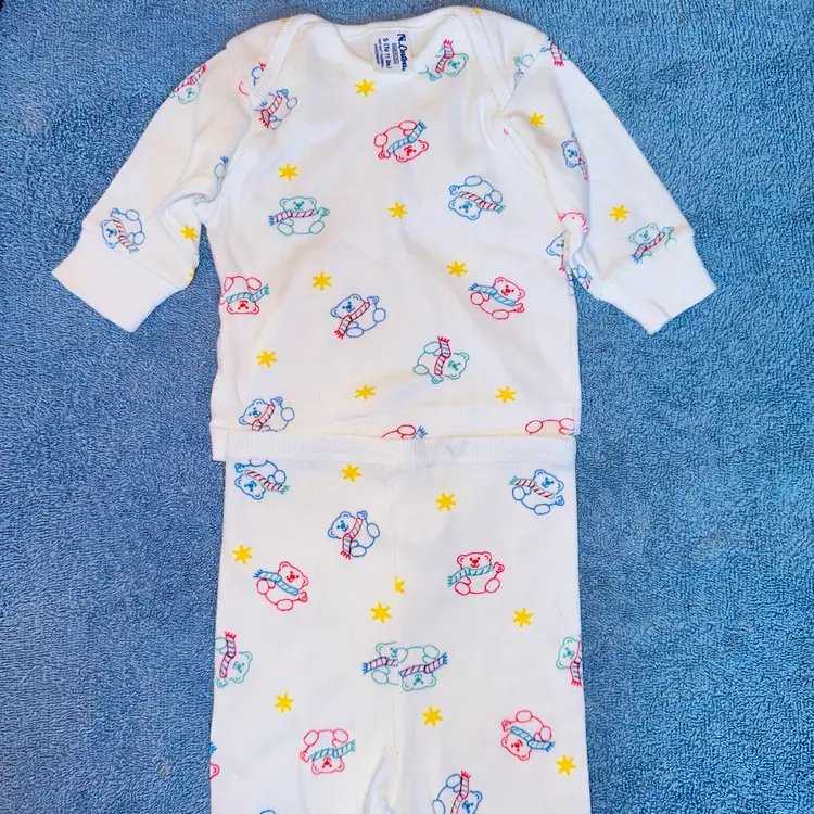 Pristine Vintage 1980s Infant Small Carter’s Thermal Underwear Pajamas. Made In USA. No Visible Signs Of Wear. No Stains, Rips, Holes Or Repairs. Bright White Color With Colorful Bears. Single Stitch. Ribbed Cuffs At Wrist And Ankle. 2 piece Top/Bottom Set. 100% Cotton. Smoke Free Home. #carters #vintageclothing #thermalunderwear #singlestitch #MadeinUSA