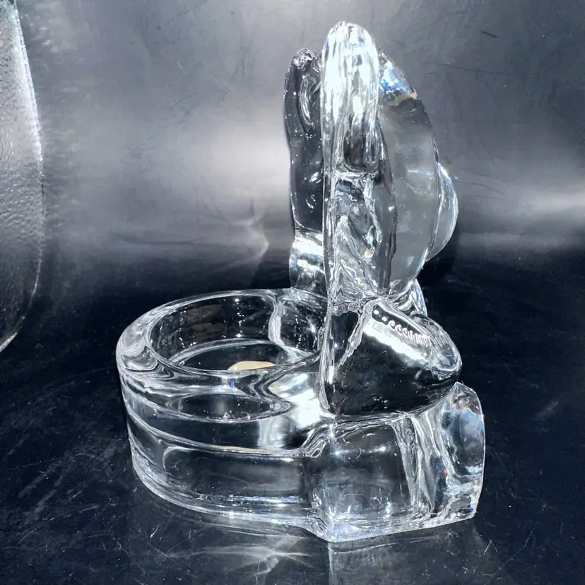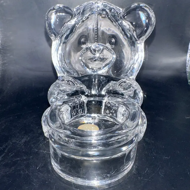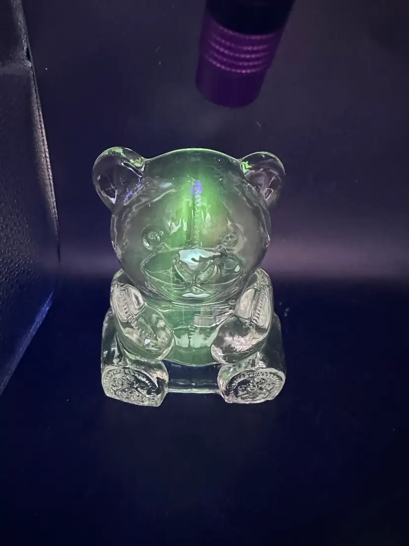 Illuminate your space with the enchanting glow of the Pristine Vintage Partylite Clear Glass Teddy Bear Votive Candle Holder. This charming piece not only adds a touch of nostalgia but also creates a warm, inviting atmosphere for any occasion. Crafted from high-quality glass, it beautifully reflects candlelight, enhancing your home décor while making perfect gifts for loved ones. Its adorable teddy bear design evokes fond memories, making it ideal for baby showers or as a delightful nursery accent. Glass glows green using a 365nm Black Light UV Flashlight