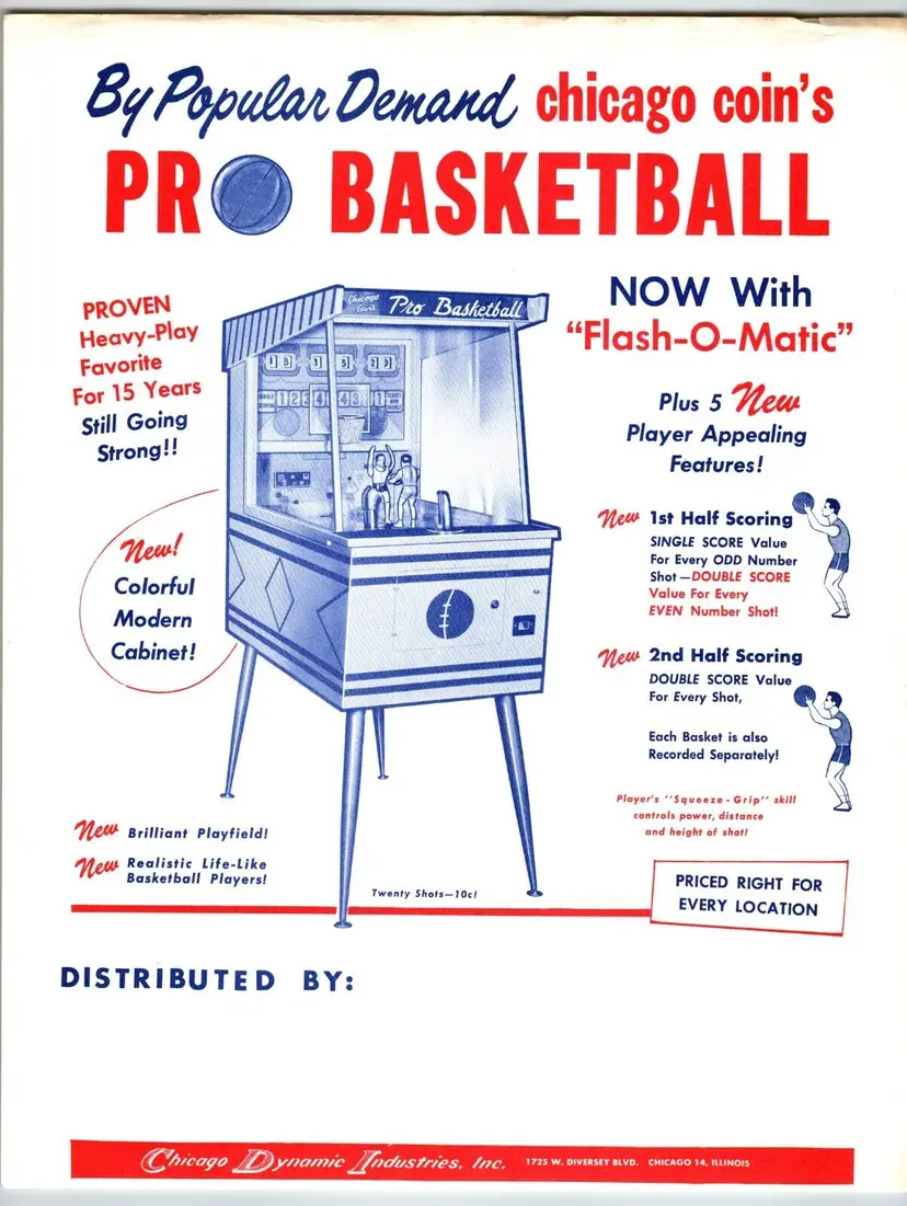 Brand: Chicago Coin Year: 1980 Game Title: Pro Basketball Theme: Basketball Original/Reproduction: Original Country/Region of Manufacture: United States Modified Item: No Arcade: Flyer