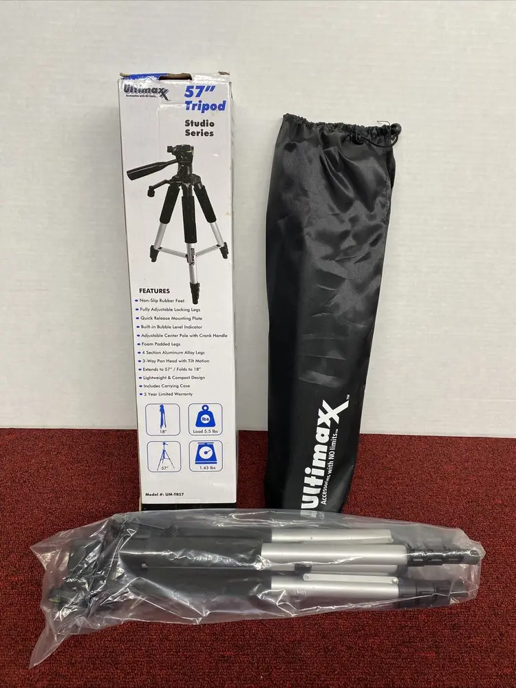 This professional-grade tripod stand is designed to support all DSLR cameras and camcorders. Its 57-inch height and adjustable pan/tilt head make it perfect for capturing the perfect shot from any angle. The stand is made of durable aluminum and can support cameras up to 5.5 lbs. The tripod is ideal for photographers and videographers who need a reliable and versatile support system for their equipment.