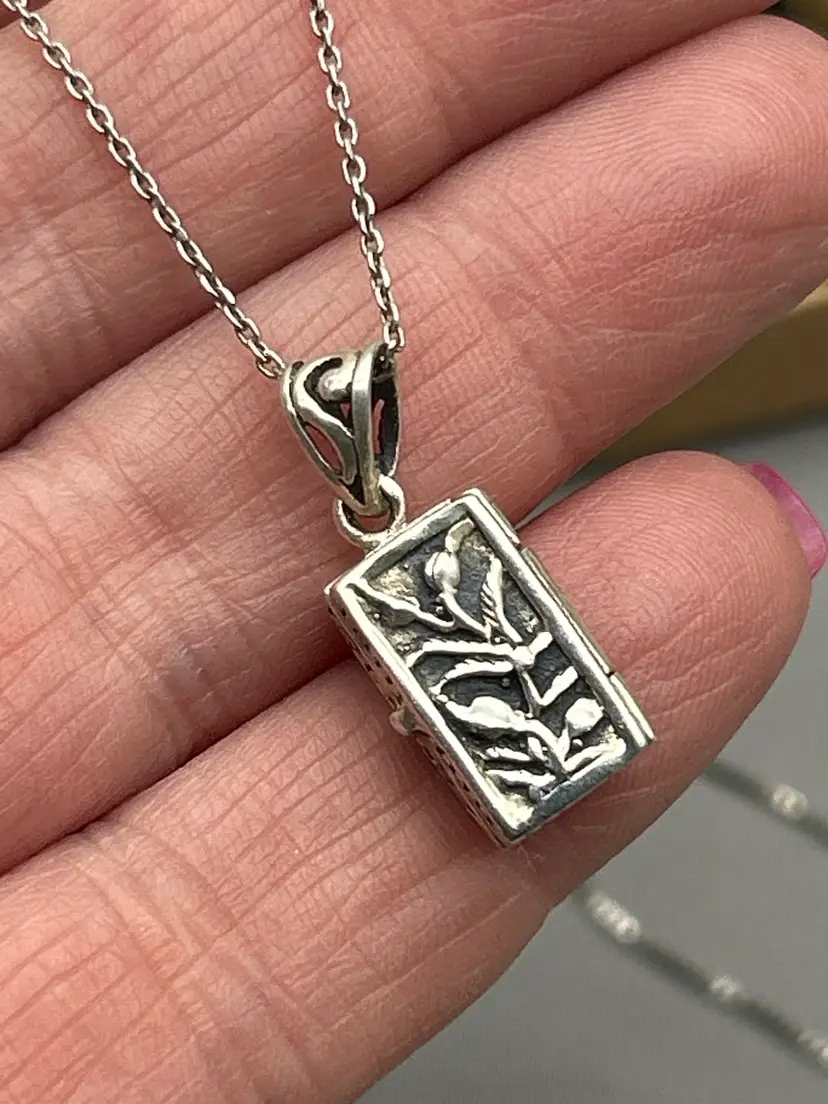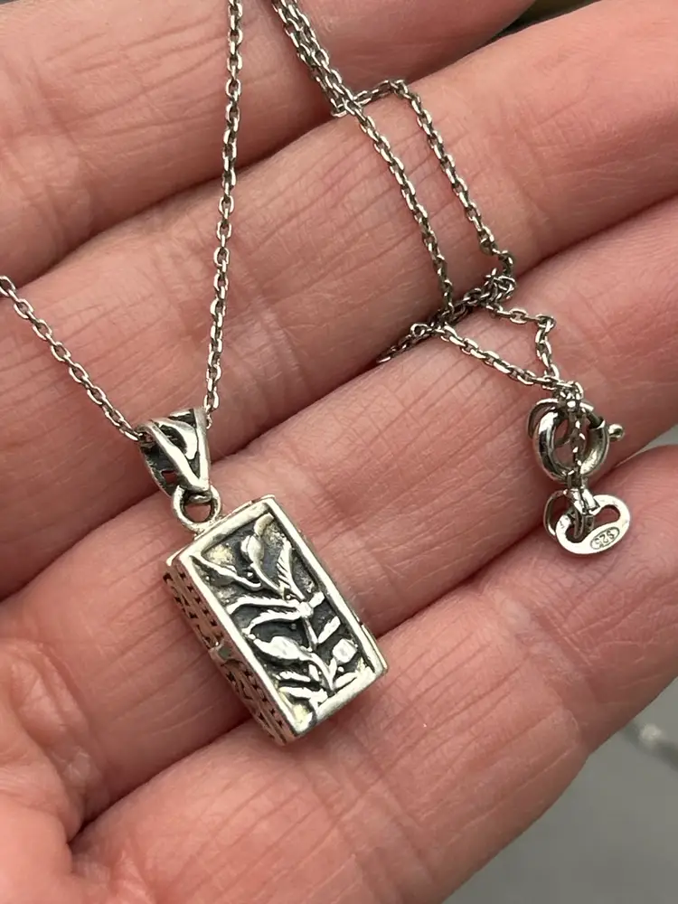 A meaningful and soulful piece from the Promise Collection, this sterling silver prayer box pendant opens to reveal a tiny compartment — perfect for holding a small prayer, affirmation, or intention. Beautifully crafted with raised floral detailing on the front, this locket-style pendant is both symbolic and wearable. A powerful reminder that some promises are quiet, personal, and sacred.