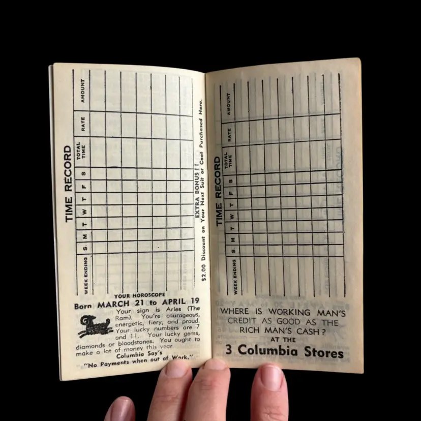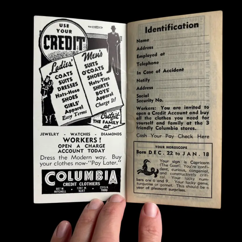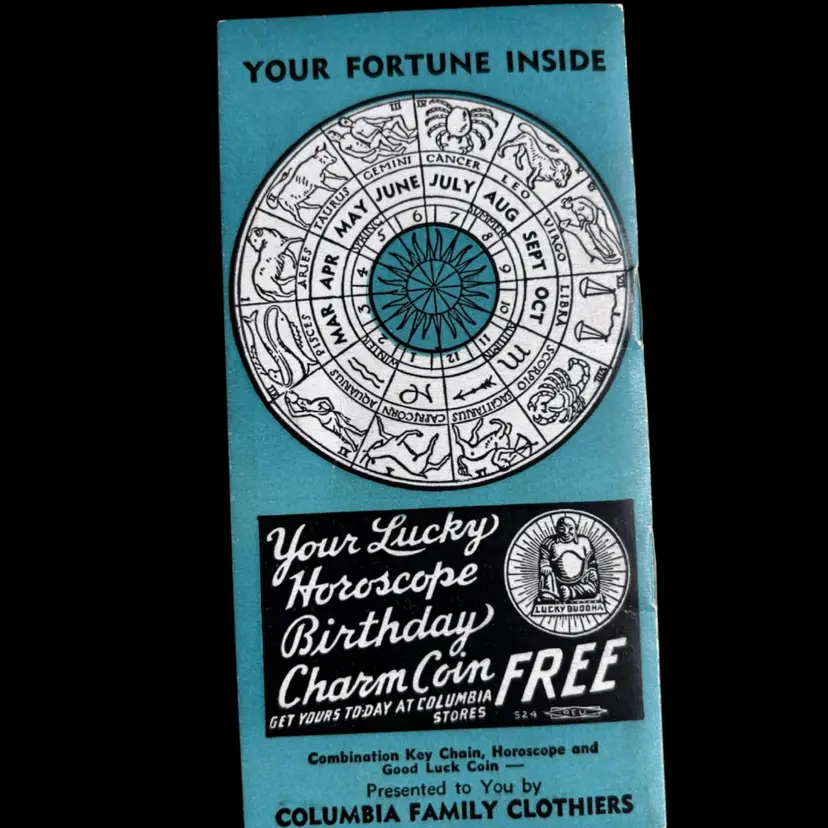 Vintage American promotional booklet. Featuring horoscopes, advertisements and more! In overall good condition, lightly used 2.75x5.25”