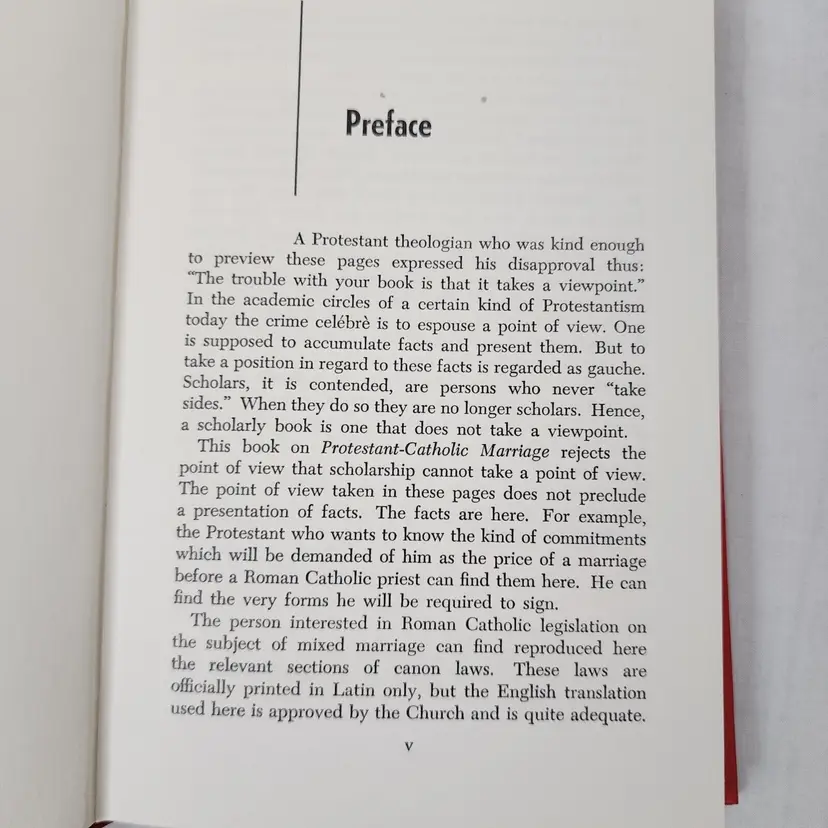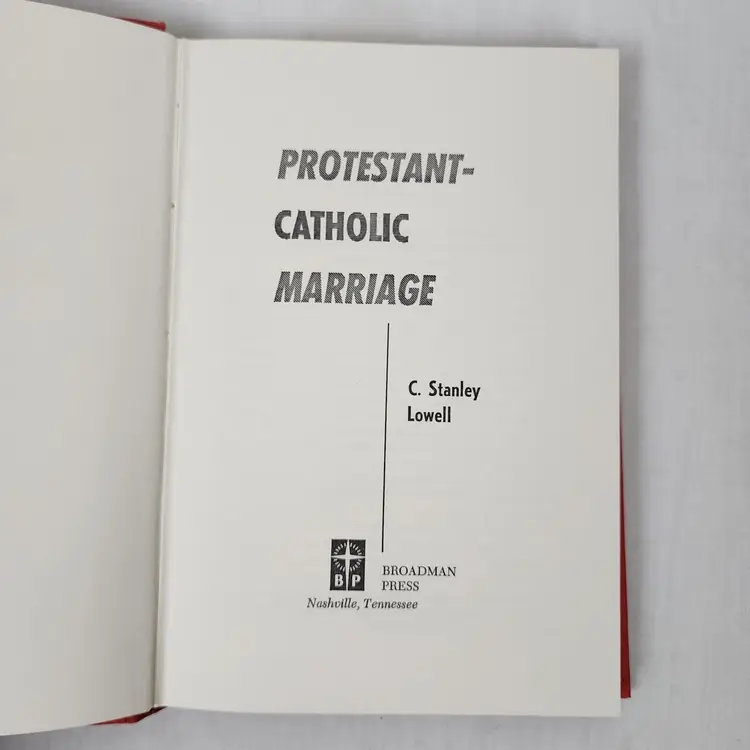 Book Title: Protestant Catholic Marriage Narrative Type: Nonfiction Publisher: Broadman Press Original Language: English Vintage: Yes Publication Year: 1962 Format: Hardcover Language: English Author: C. Stanley Lowell Genre: Religious & Spiritual Topic: Comparative Religion, Jesus Christ, Marriage Country/Region of Manufacture: United States