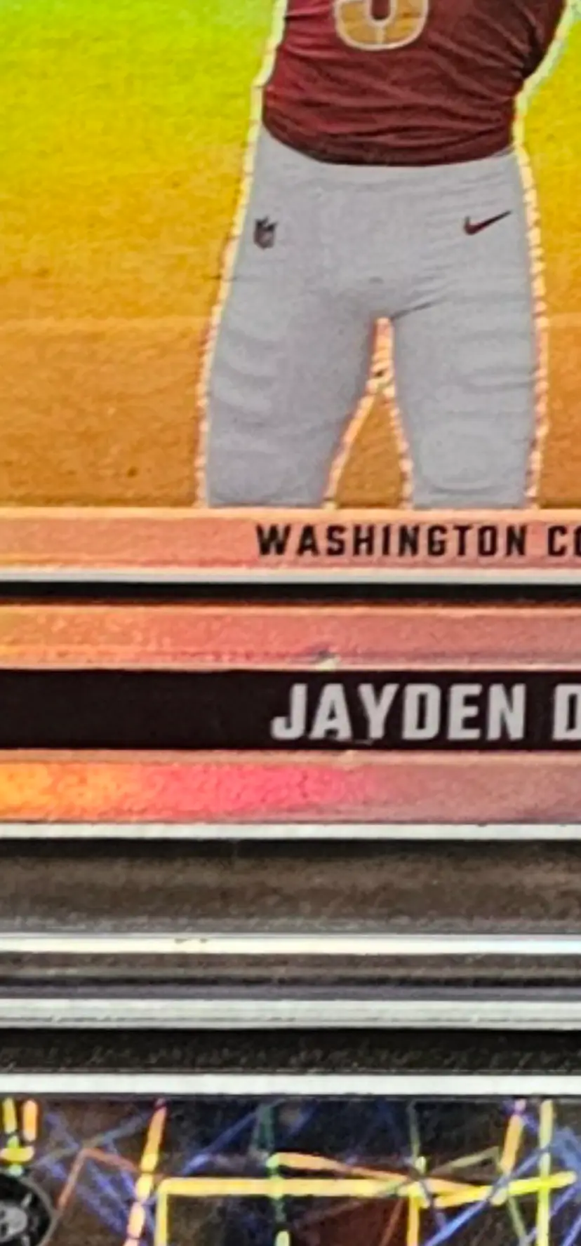 Jayden daniels rated rookie optic holo(indent above "a" and samll damage on the back of the card)