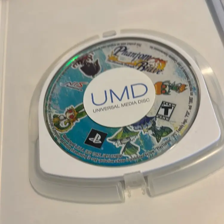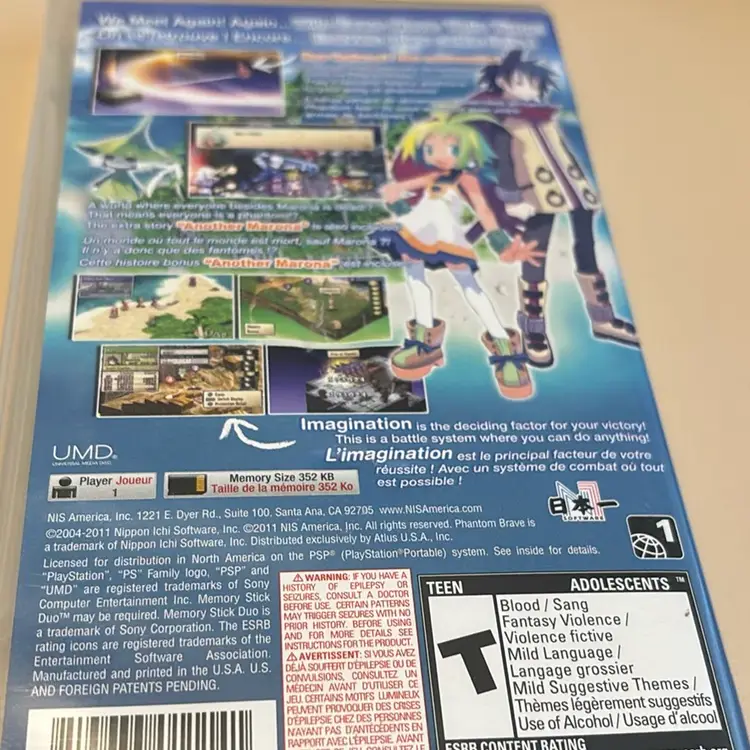 Complete in case. Some sticky residue remains on back of case