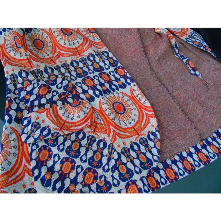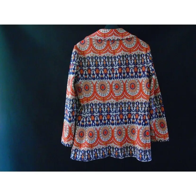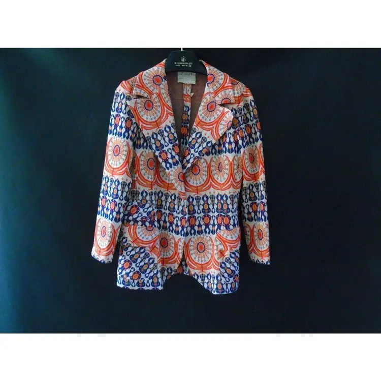 Vintage 1970's Women's Psychedelic Blazer Jacket Funky Blazer - Peacock Revolution - Loud - Orange/ Blue Designed Exclusively for Cabot 100 Polyester, Double Knit Single Breasted , Fitted ,One Button Closure Unlined , 1 Mock Pocket & 2 Flap Pockets WPL 12380 (Cabot Knitting Mills) S/M ~ No size tag , please check measurements below Taken when lying flat , seam to seam Bust (pit to pit) 20", Waist 18", Shoulder to shoulder 16" Sleeve ( pit to cuff) 15", Hemline 23", Garment Length 27.5" Great Condition- no rips, tears or stains