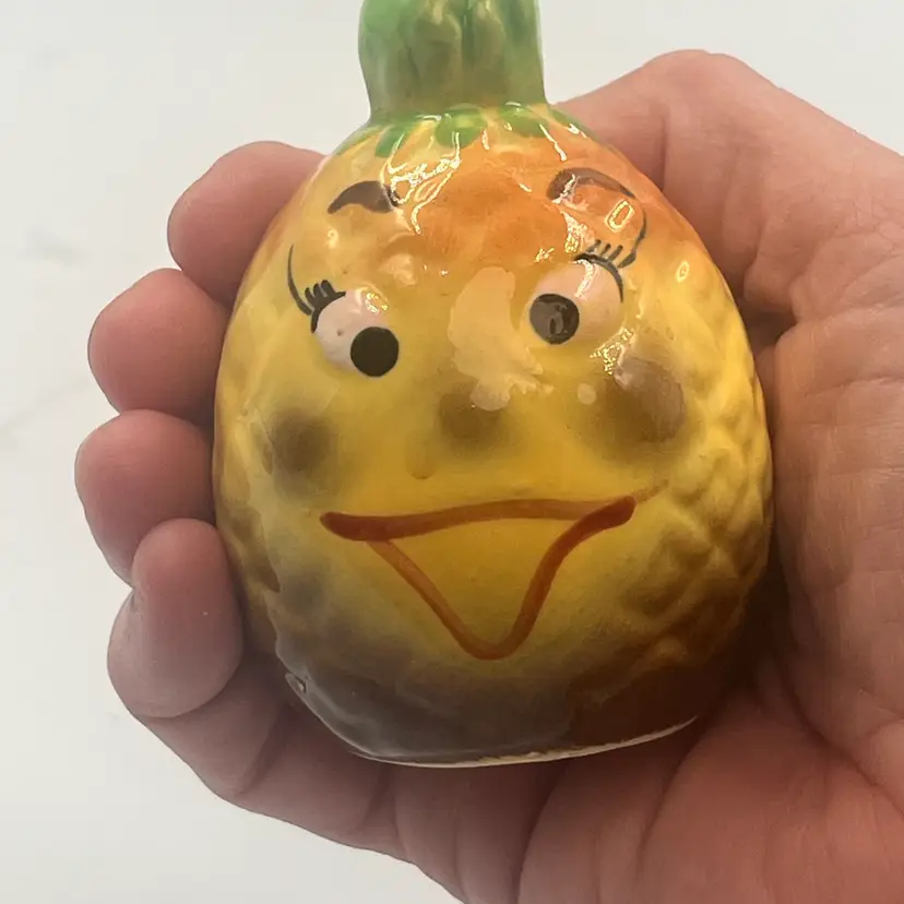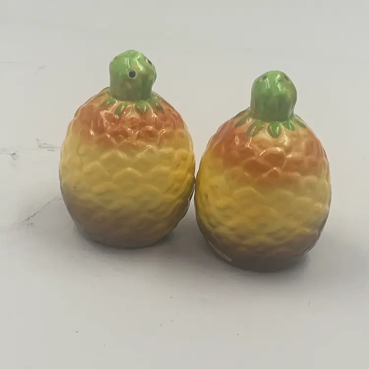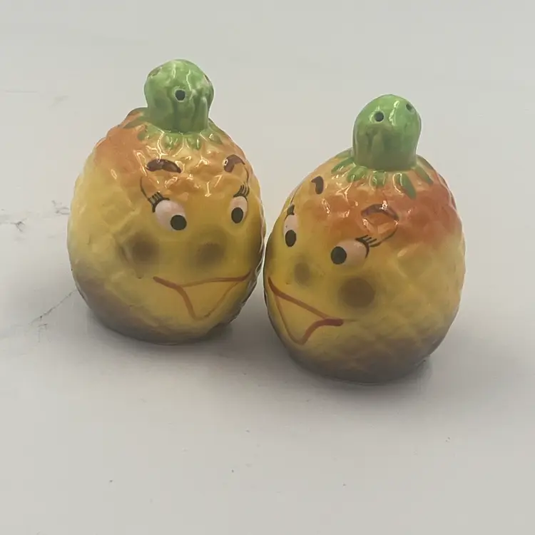 Who invited these two to the Luau? - grab these slightly unhinged kitchy pineapples for your next summer ho down! Great condition - Original corks still here - No chips or cracks
