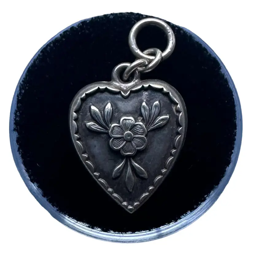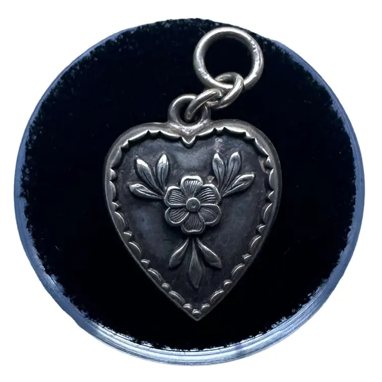 Puffy Heart Charm - Forget Me Not Flower - Vintage Sterling Silver