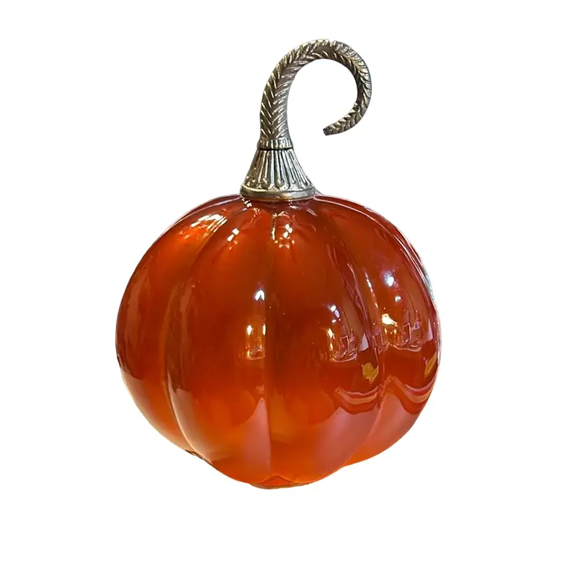 Lovely fall/ Halloween decor item. Hand blown in India. Measurements are approximate. 8 inches tall 7 inches wide.