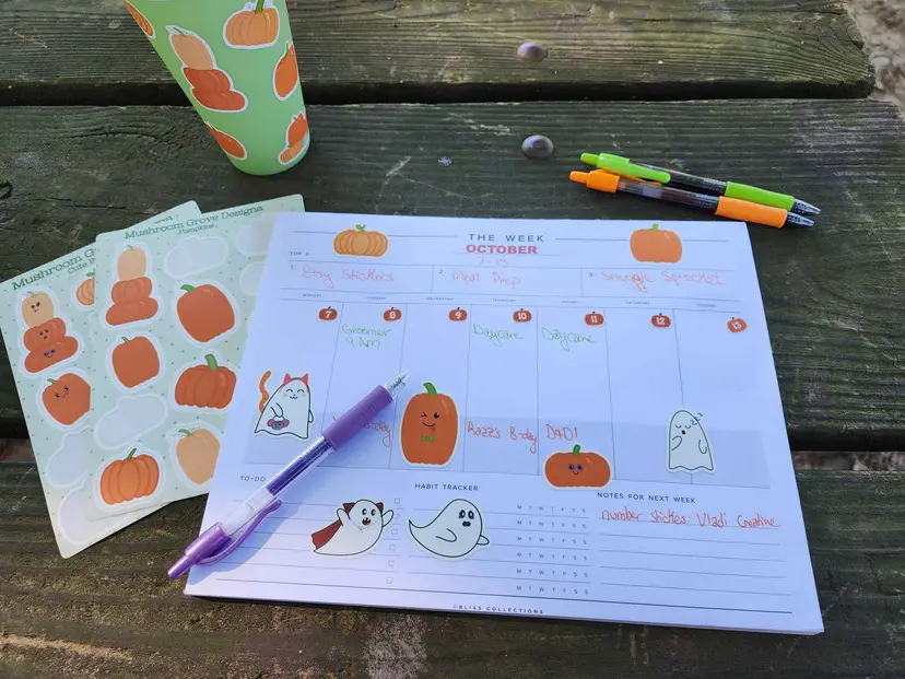 These full color, matte finish vinyl stickers are durable enough to decorate your favorite water bottle, tablet, and phone or use in a planner, bullet journal, or notebook!