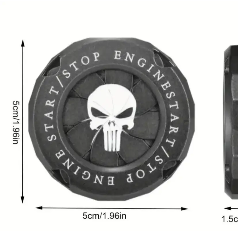 Keywords: Punisher, Skull Accessory, Law Enforcement, Car Accessory, Truck Accessory, Rotary Engine Start Button, Start Button Cover, Automobile Parts, Automobile Accessories
