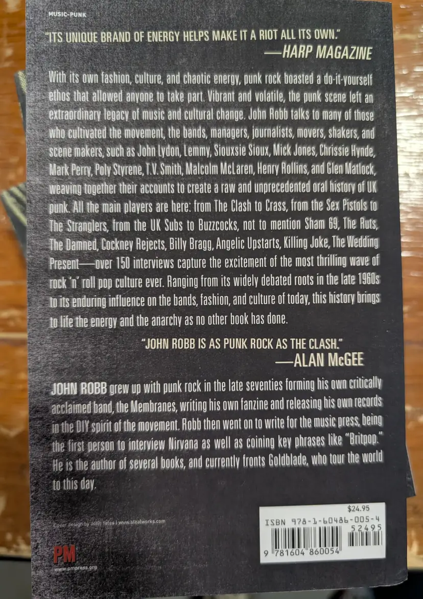 By John Robb With its own fashion, culture, and chaotic energy, punk rock boasted a do-it-yourself ethos that allowed anyone to take part. Vibrant and volatile, the punk scene left an extraordinary legacy of music and cultural change. John Robb talks to many of those who cultivated the movement, such as John Lydon, Lemmy, Siouxsie Sioux, Mick Jones, Chrissie Hynde, Malcolm McLaren, Henry Rollins, and Glen Matlock, weaving together their accounts to create a raw and unprecedented oral history of UK punk. All the main players are here: from The Clash to Crass, from The Sex Pistols to the Stranglers, from the UK Subs to Buzzcocks—over 150 interviews capture the excitement of the most thrilling wave of rock ’n’ roll pop culture ever. Ranging from its widely debated roots in the late 1960s to its enduring influence on the bands, fashion, and culture of today, this history brings to life the energy and the anarchy as no other book has done.
