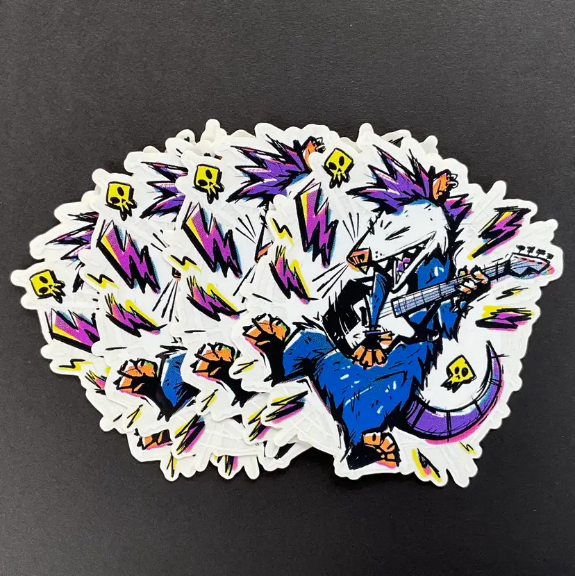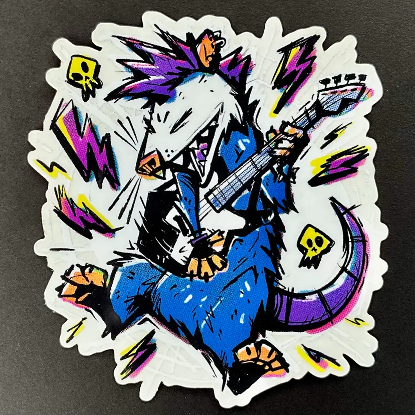 3 x 3.5" clear background waterproof 'Punk Rock Possum' sticker