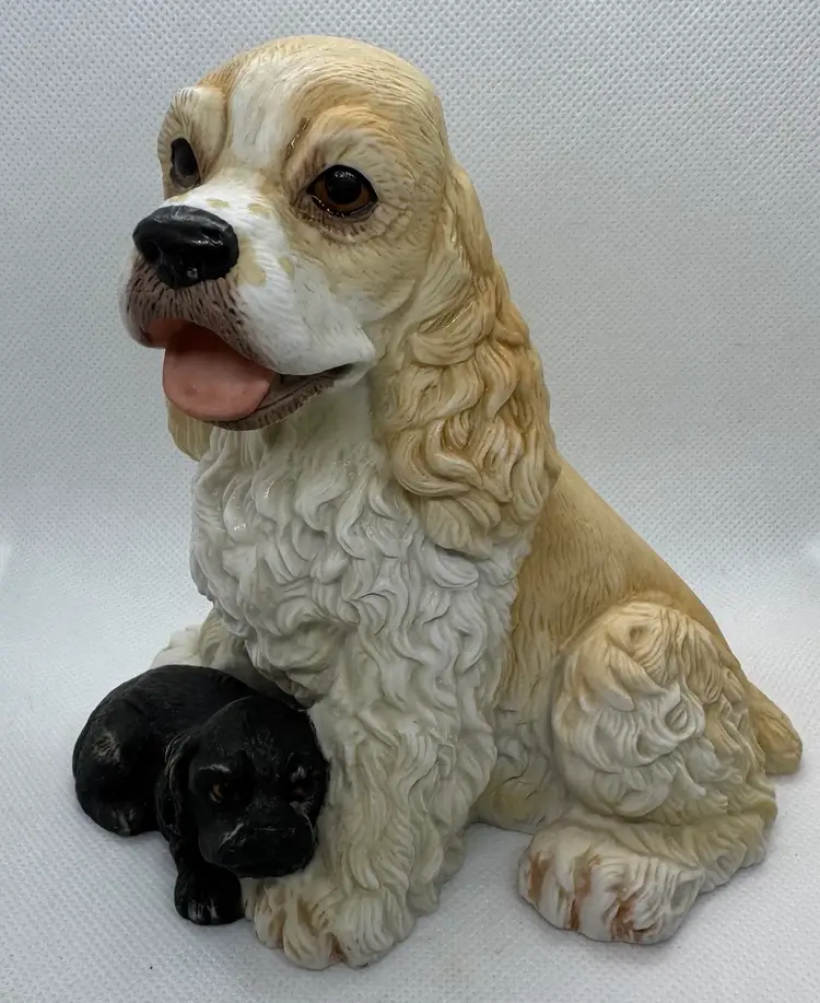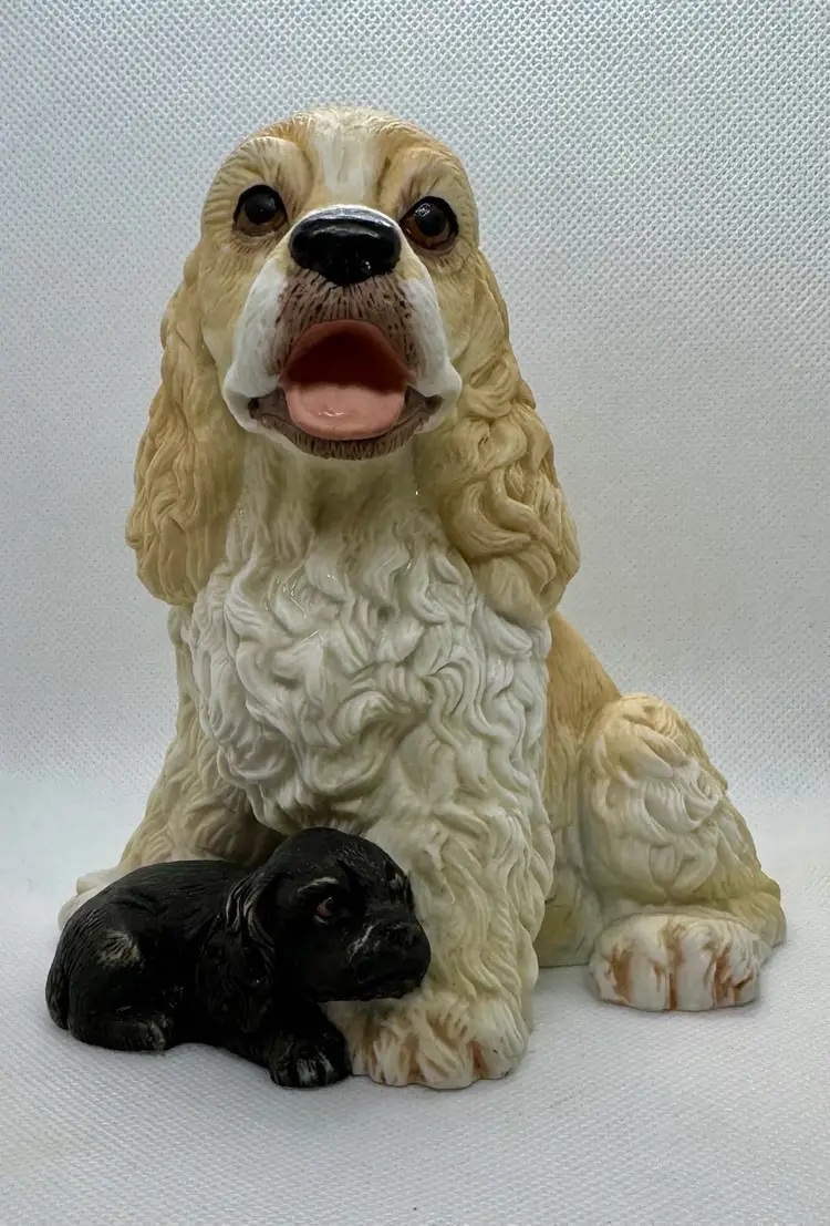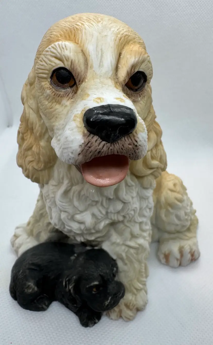 Adorable ceramic figurine of a cocker spaniel dog and puppy by ENESCO. Part of the pure bread pets collection by Kathy Wise Made in Taiwan R.O.C. Apx 5" tall x 5 1/4" wide