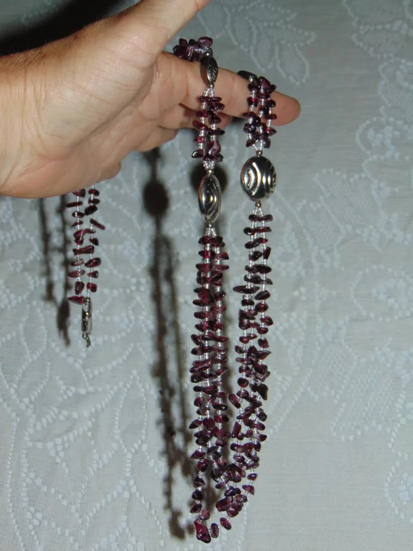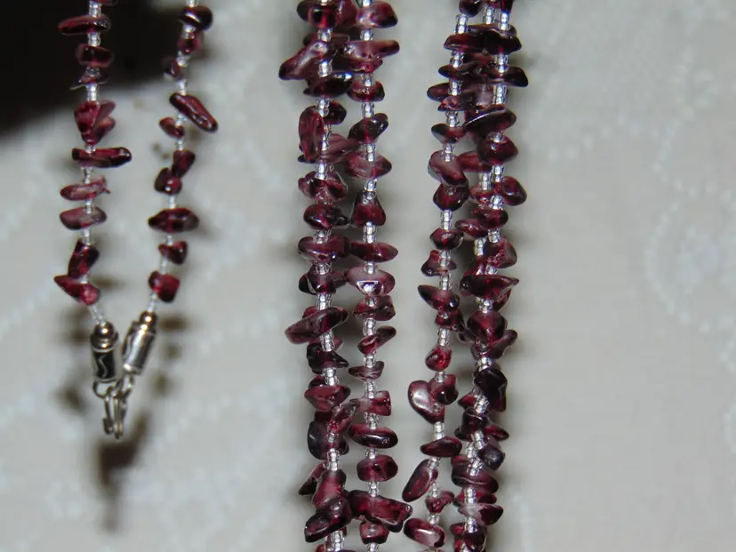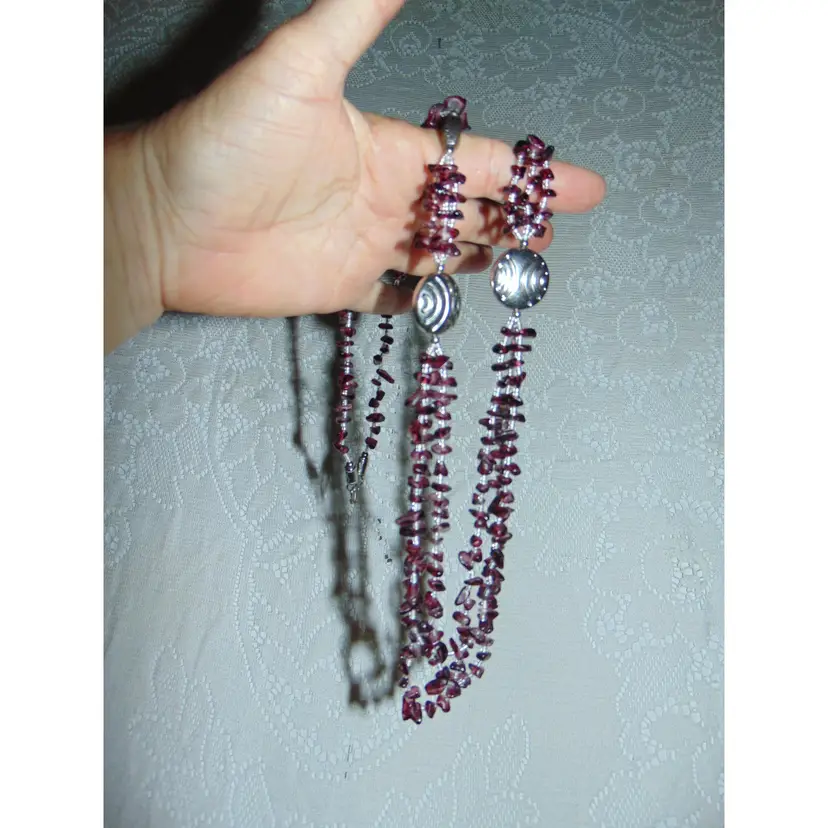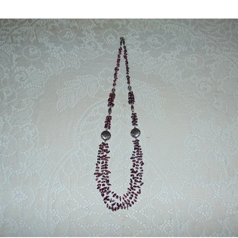 Purple Amethyst Glass Stone Looking Chips 3 Strand Statement Necklace Womens 32" total! Vintage, Nice Condition, no notable flaws! Ready to go Silvertoned accents