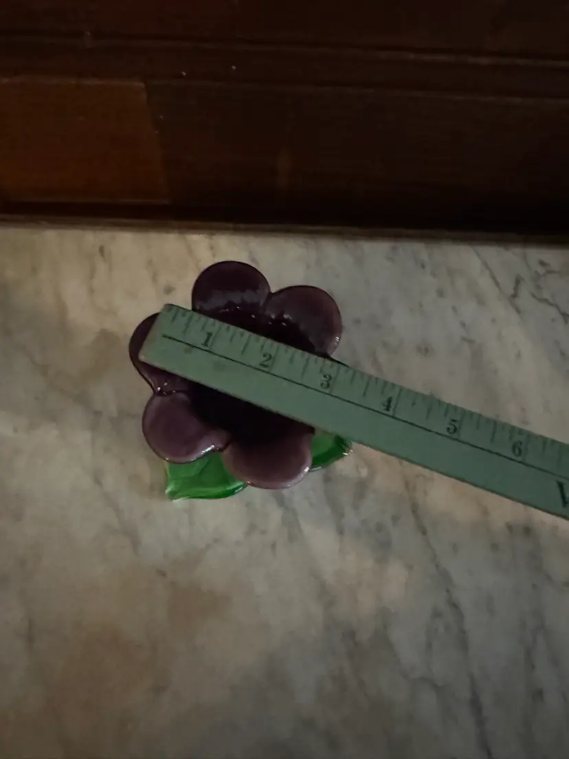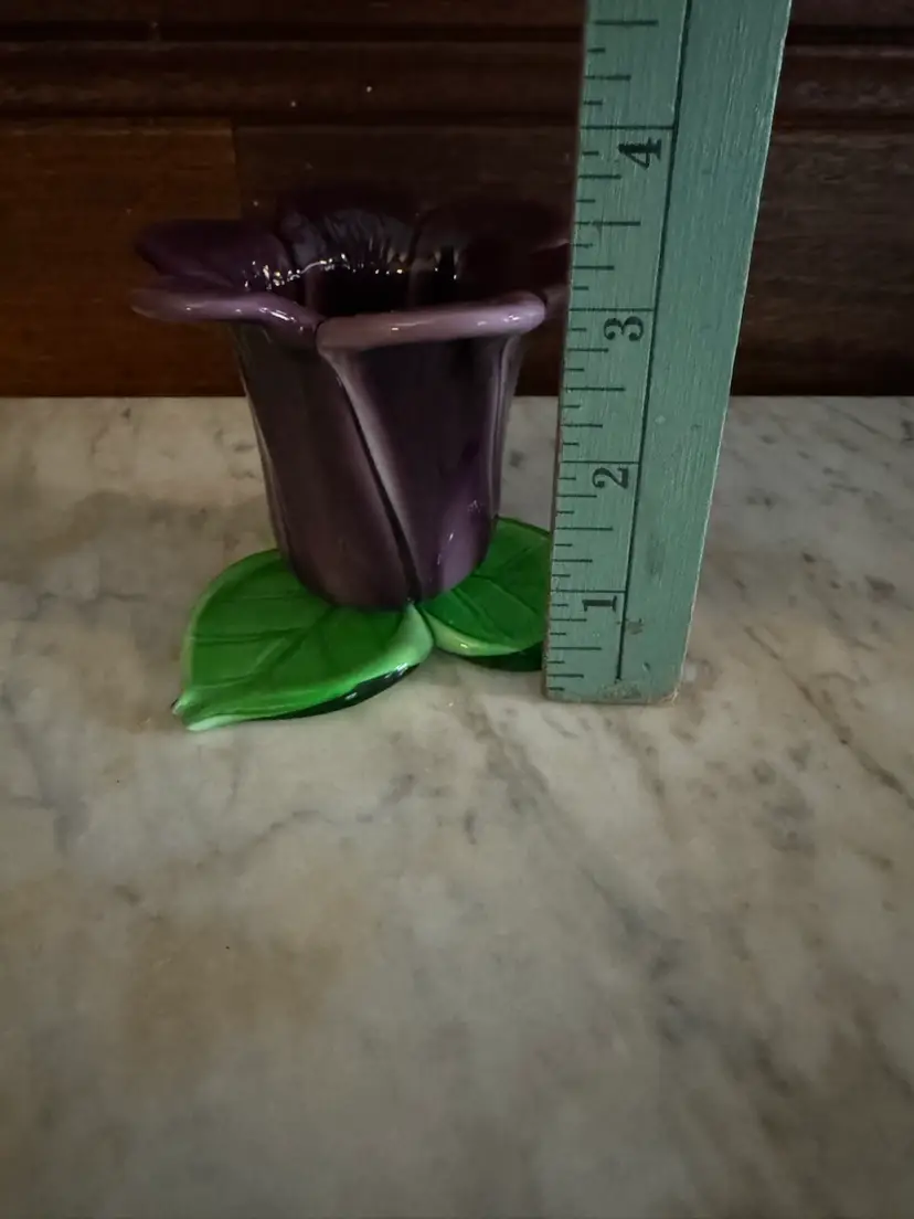 Pretty little art glass votive candle holder. Purple and green. 3 inch by 3 inch with no chips or cracks