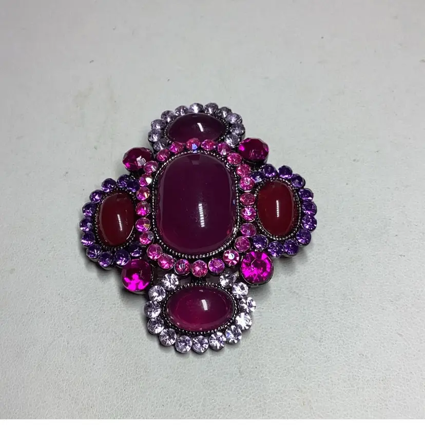 Purple & Pink Stone Brooch Or Pendant 2 1/4”