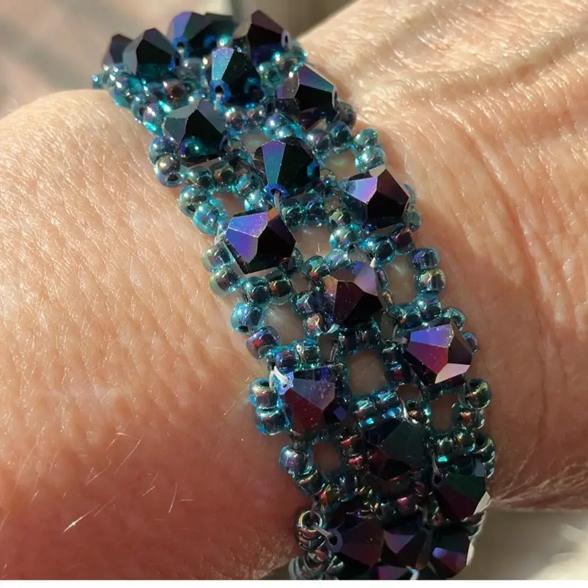 Clasp marked gold filled. From an artist's Estate in Southern California. In addition to beadwork, she was a professional porcelain painter.